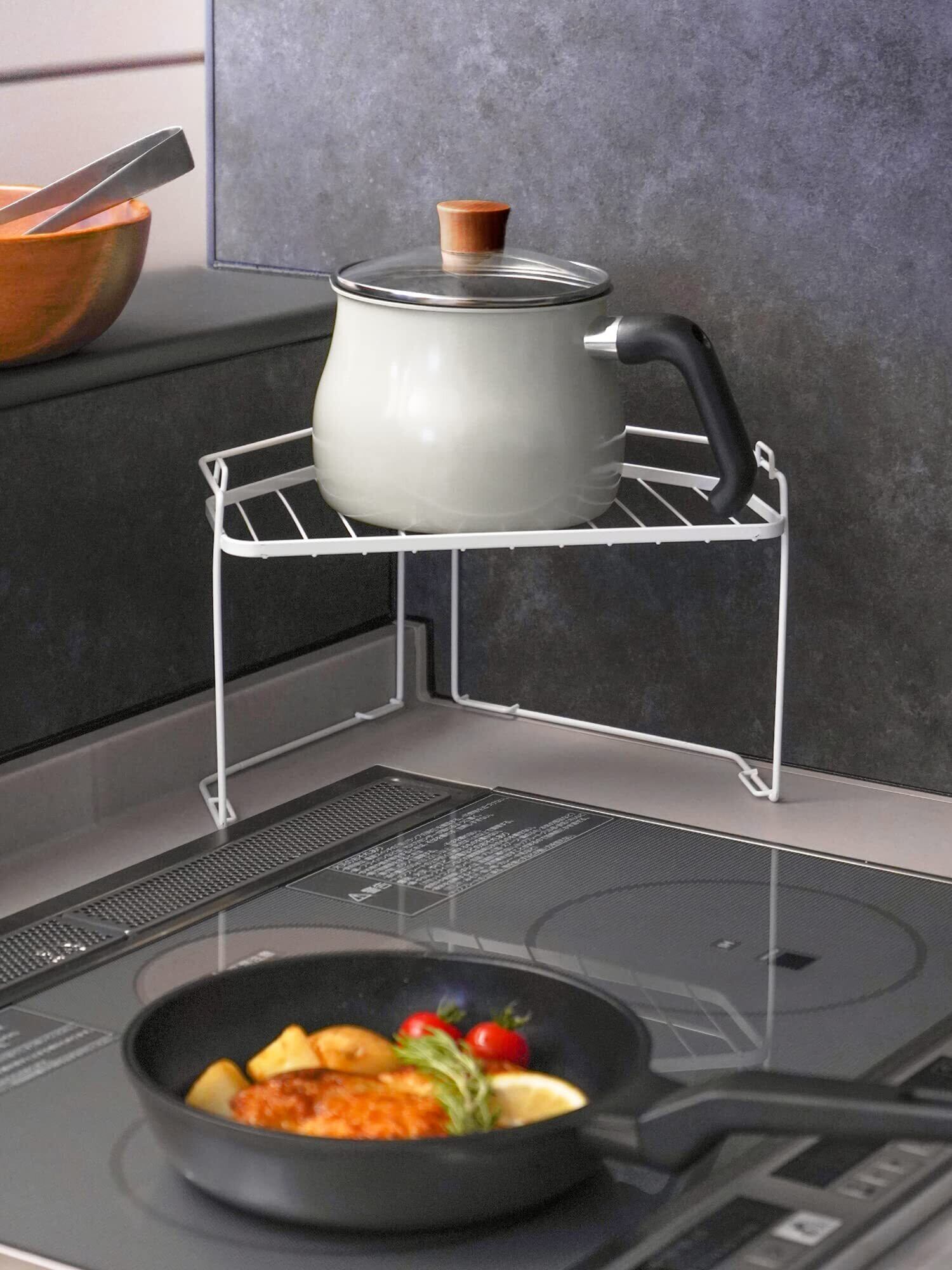 コンロ奥の隙間収納に。角にピッタリ置ける三角型。