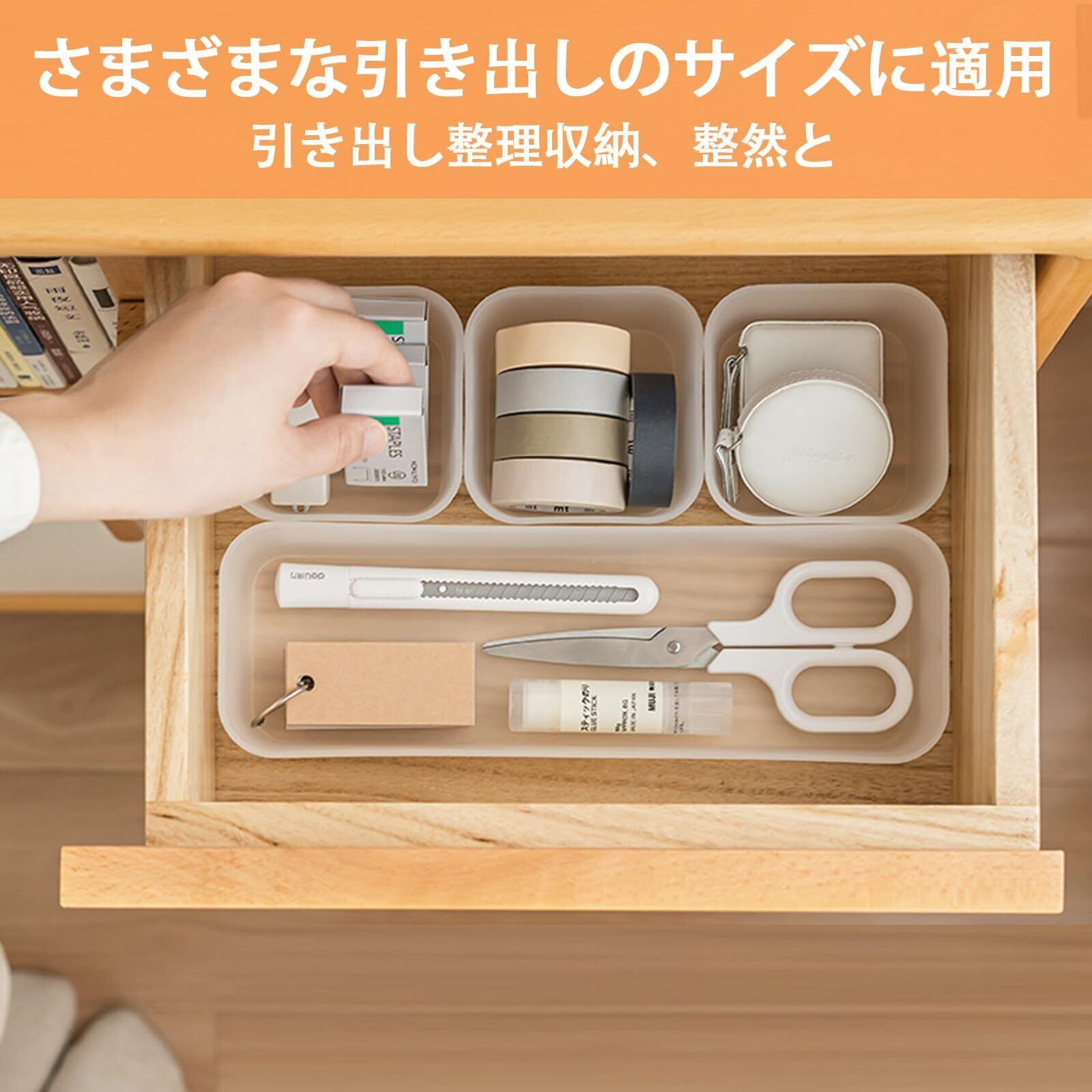 【自由な組み合わせ】 これらのボックスは自由に組み合わせて、さまざまな引き出しのサイズに適合します。各ボックスは単独で使用するだけでなく、必要に応じて組み合わせて大きな収納スペースを作成でき、スペースを節約して生活をより便利にします。