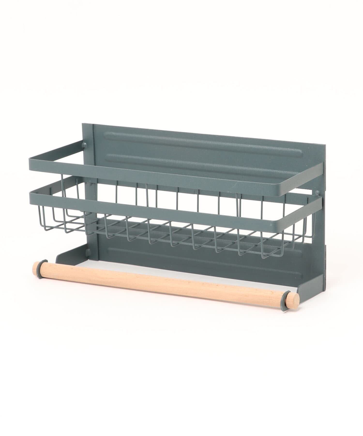 キッチン小物を収納できるラック登場! キッチンペーパーホルダーもついていてとっても便利! マグネット式で楽々設置できます。