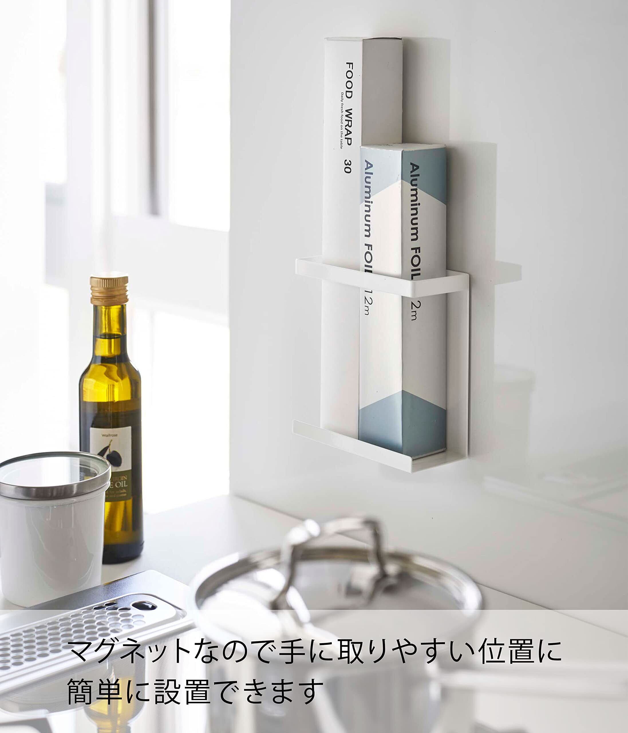 マグネットが付くスチール壁面に簡単取り付けのラップホルダー。