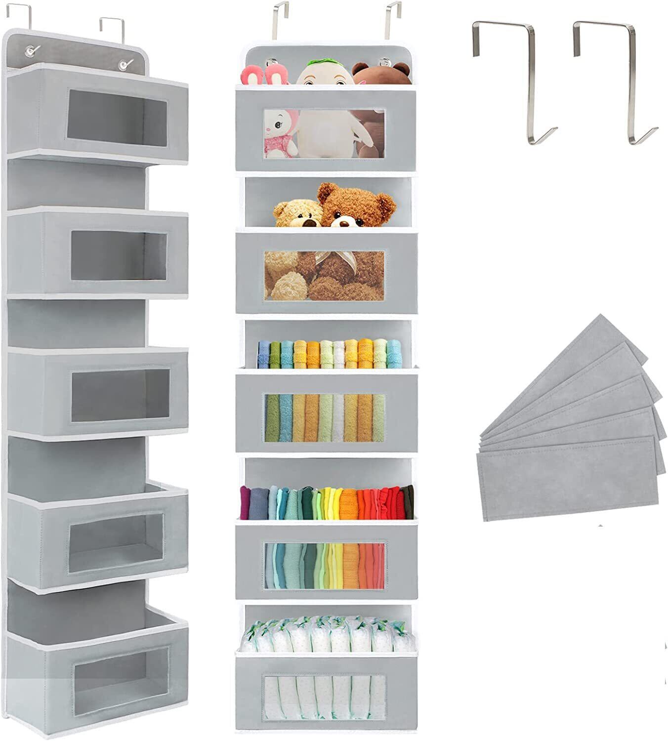 Tazive ウォールポケット 5段 吊り下げ収納 ドア掛け収納 キッチン収納 折りたたみ式 おしゃれ クローゼット収納 小物収納 洋服 ぬいぐるみ タオル 下着 おもちゃ 雑誌 書類/漫画 日常雑貨 収納 覗き窓付き2 x フック付き(5段/グレー)