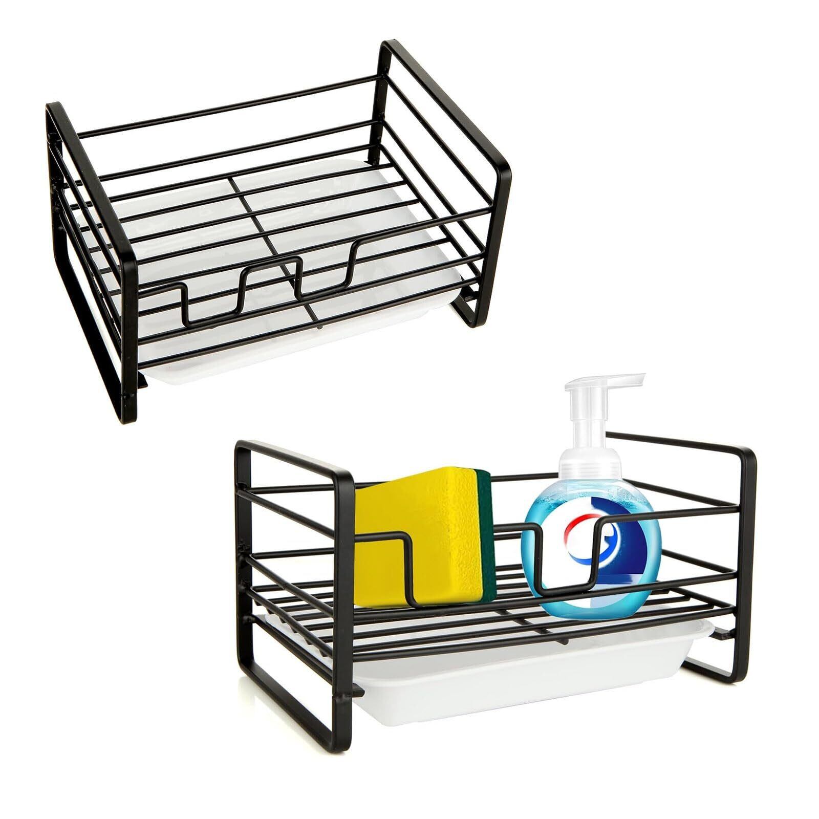 【2個セット】スポンジホルダー キッチン スポンジラック スポンジ置き 縦18.2cm横12.2cm高さ10cm 置き型 キッチン収納 シャンプー置き 水切りラック 洗面台・キッチン収納(ブラック)