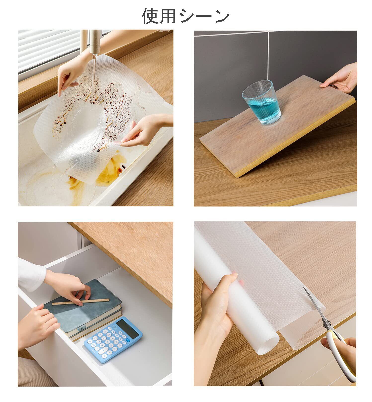 【防水・防湿・自由にカット】防水性や防湿性にもすぐれているので、湿気が多いシンク下や靴箱など家中の収納に使えるので便利です。設置場所に合わせて、はさみなどで大きさに合わせて自由にカットできる。
