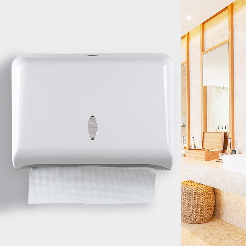【大容量業務用ペーパータオルホルダー】高品質ABS素材から作られて、軽くて持ち運びしやすいのが特徴。樹脂製のためサビの心配がなく、手垢や水跡がつきにくく、汚れてもお手入れが簡単なので、病院、駅、レストラン、美容室、映画館、ホテル、医療機関、オフィスビルなどの商業施設や公共団体に最適です。