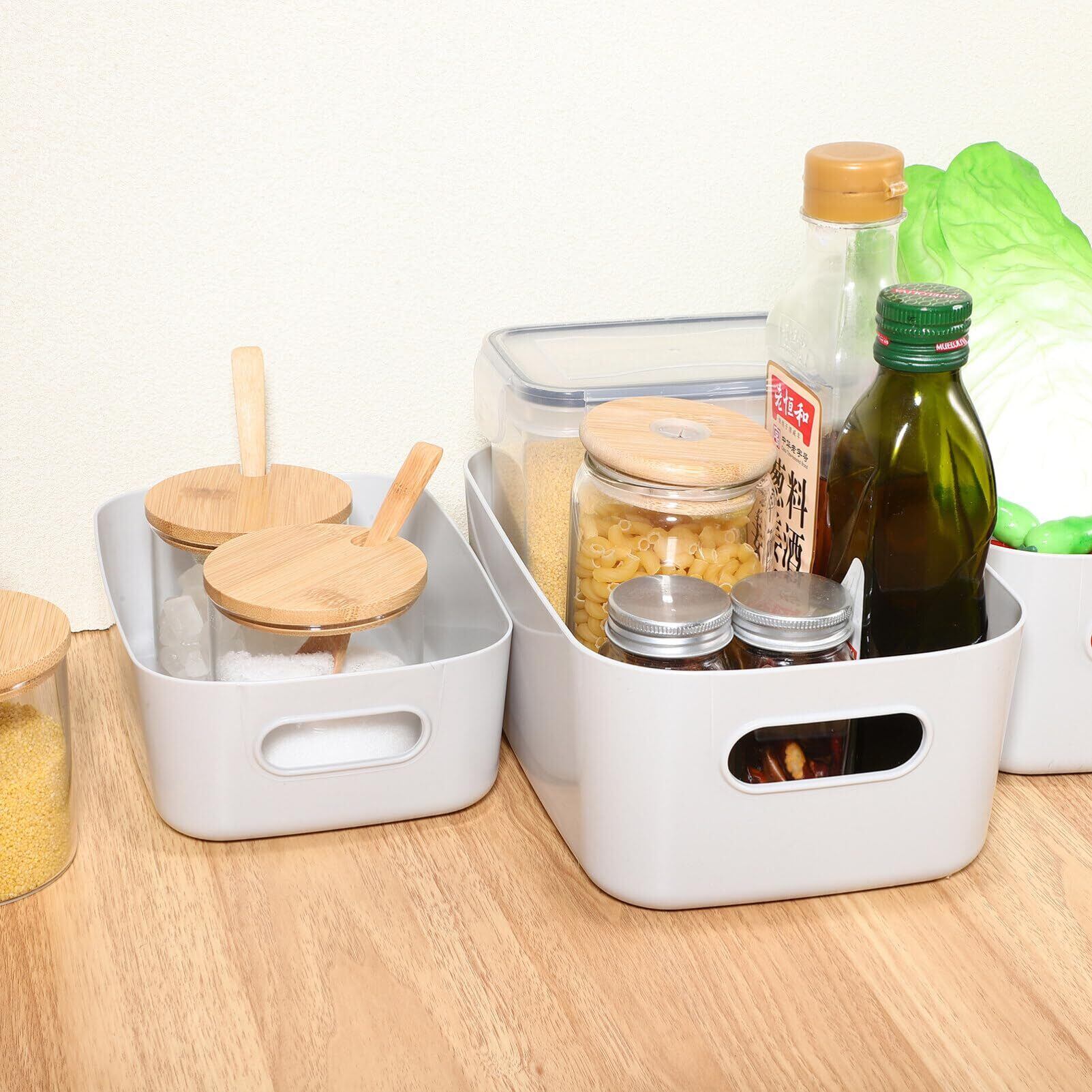 NUOLUX 収納ボックス プラスチック 小物入れケース 整理整頓 持ち手穴付き(大+小)4個セット 収納バスケット 浴室 トイレ収納 押入れ収納 雑貨整理 化粧品収納 卓上収納ケース 洗面所/リビング/キッチン収納