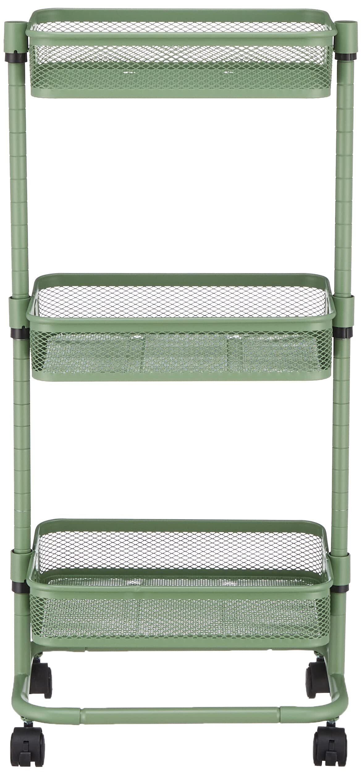 萩原 キッチンワゴン バスケットトロリー 家事ワゴン 【3段階高さ調節】 キャスター付き メッシュタイプ オリーブグリーン 奥行26cm KR-3365GR