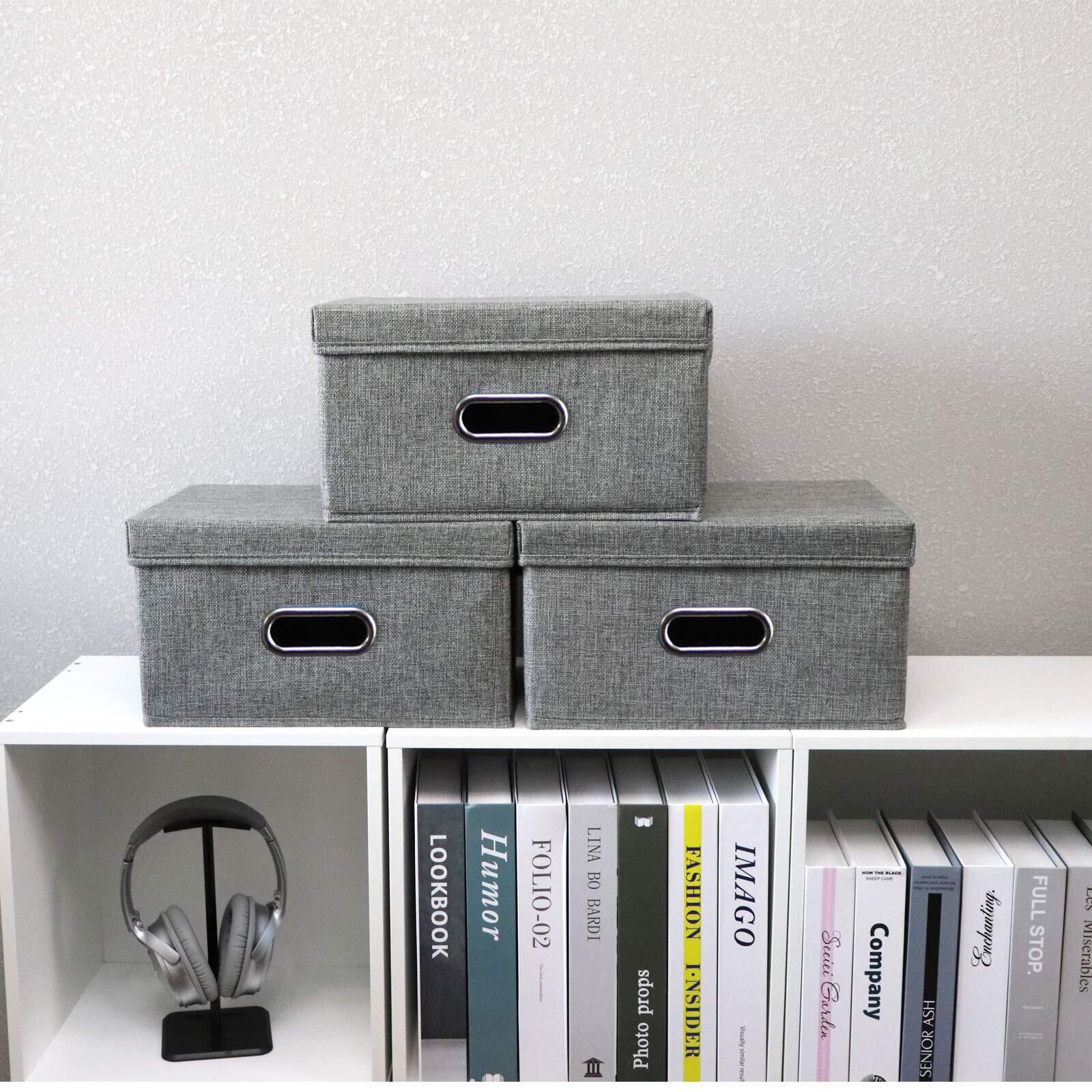 Yawinhe 3点セッ 収納ボッ トふた付き クス 折りたたみボックス 取っ手付き 衣類 おもちゃ 書類 小物入れ 寝室 クローゼット整理箱 (グレー, 33×23×20cm)