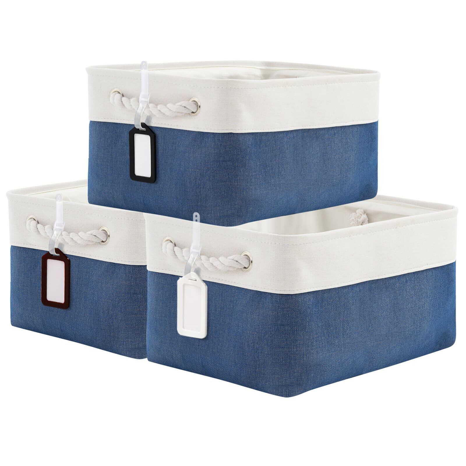 TcaFmac 収納バスケット 収納かご 3個セット 折り畳み式 幅35*奥行25*高さ17cm ランドリーバスケット ストレージバスケット 洗濯かご 衣類収納ボックス 小物入れ おしゃれなインテリア雑貨 おもちゃ 車用 オフィス 引き出し ファブリック綿麻製 取っ手付き ホワイトブルー