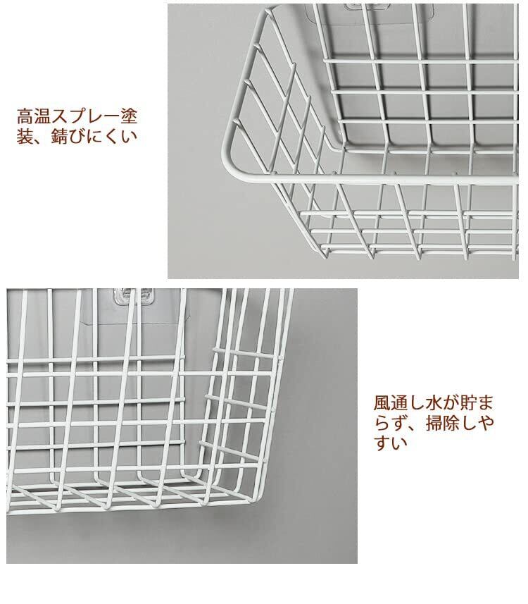 【シンプル便利なデザイン】シールタイプのフックにつけられる収納カゴです,余計な装飾がなく、シンプルなデザインなので、すっきりしています。。風通し水が貯まらず、掃除しやすい、ラックの清潔衛生の維持がらくらく。