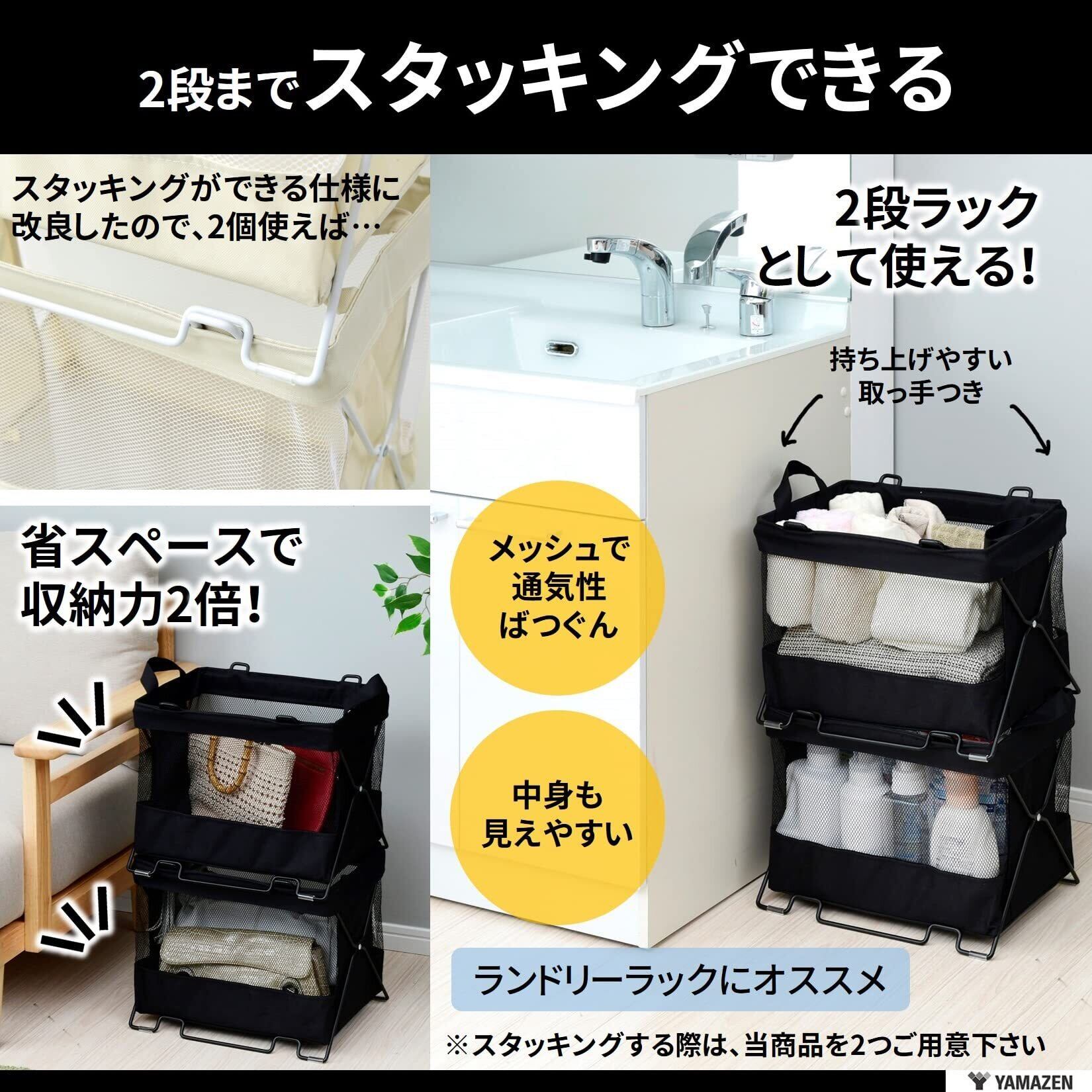 [山善] 荷物置き 収納ボックス スタッキングできる 折りたたみ 通気性 S(幅37×奥行28.5×高さ33cm) 収納 ランドリーラック かんたん組み立て アイボリー HTB-2S(IV)