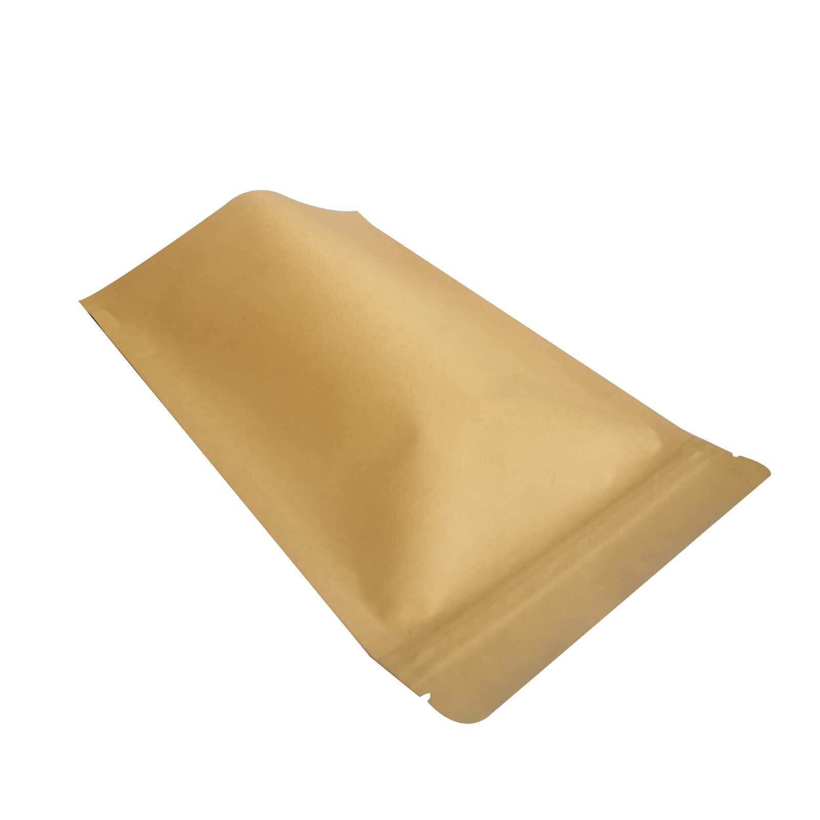 50枚入 クラフト紙 内面 アルミ箔 ジップ袋 コーヒー 豆 保存 袋 茶色 再封可能 小分け袋 自立バッグ 角底袋 密封ポーチ 米袋 防湿 防水 キッチン収納 貯蔵用(17x24cm)