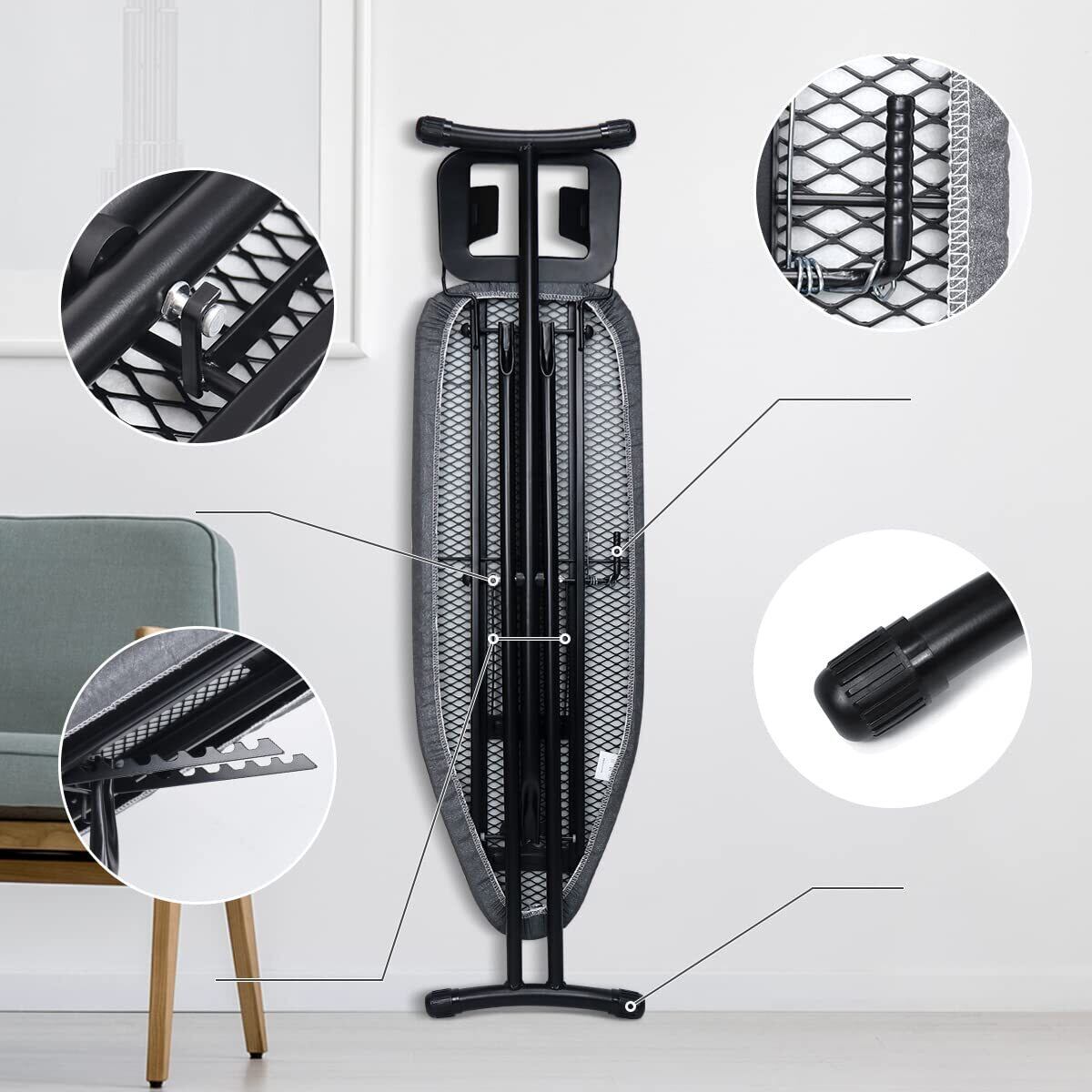 折りたたみ可能な設計:足を折りたたむだけで、重要なストレージスペースを節約し、保管しやすくなります。滑り止めプラスチックの足を使用して、適切な位置にしっかり固定することで、アイロンがけをしている間に快適に立つことができます。アイロン板は使用時に常に安定し、折り畳みや輸送時に安定している安全ロックもあります