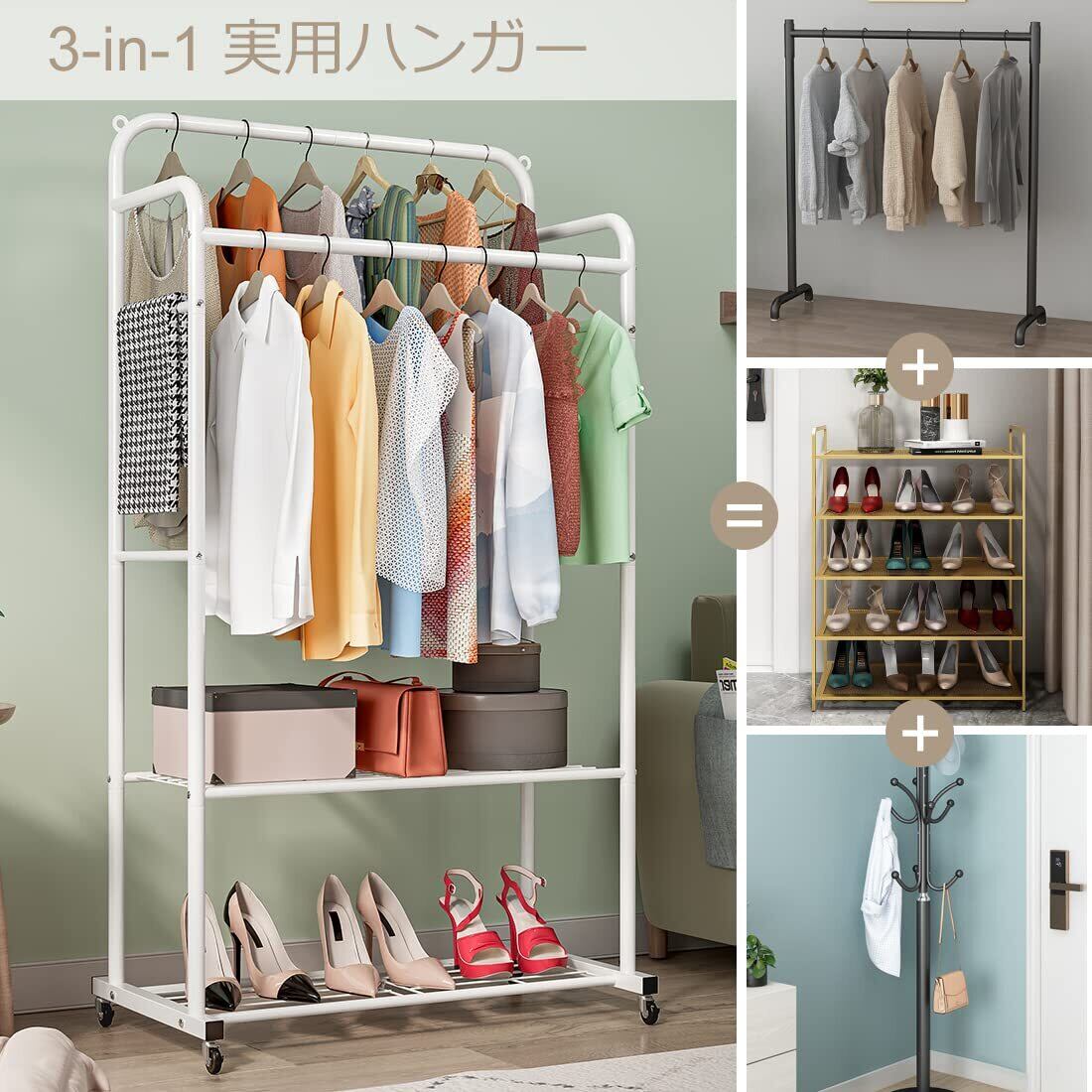 【省スペースにスッキリ収納】:衣類をかけるだけでなく、置くスペースも充実しています。スーツやコート.ワンピースなどの長い洋服が収納可能!置き棚は2ヶ所もあり、服以外はバッグ、マフラー、靴、毛布などのファッション小物の収納にも便利です。 さらに4つのフック付きなので、ジャケット、シャツ、傘、帽子やカバンなどのファッション小物の収納にご活用いただけます。