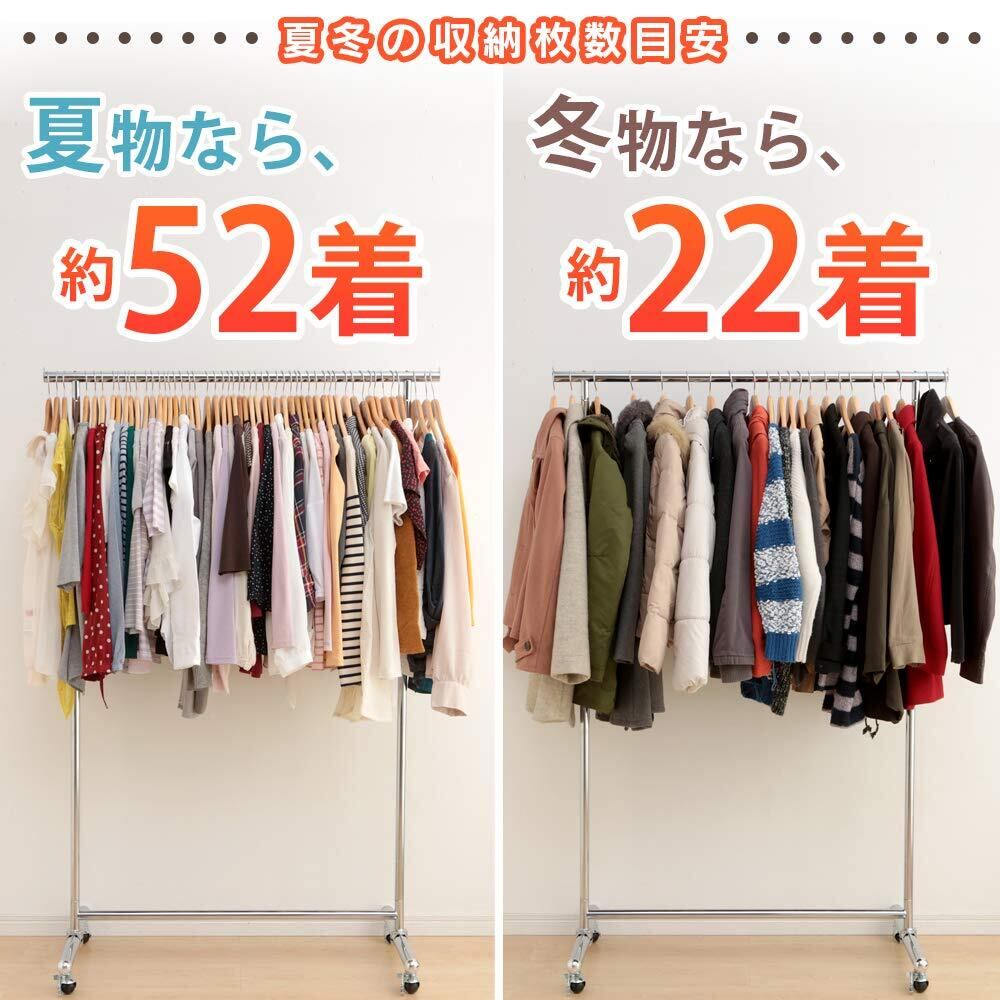 【バツグンの収納力】夏物なら約52着、冬物なら約22着収納できる。本体はスチール製なので、重さを気にせず幅いっぱいにどんどん掛けられる。