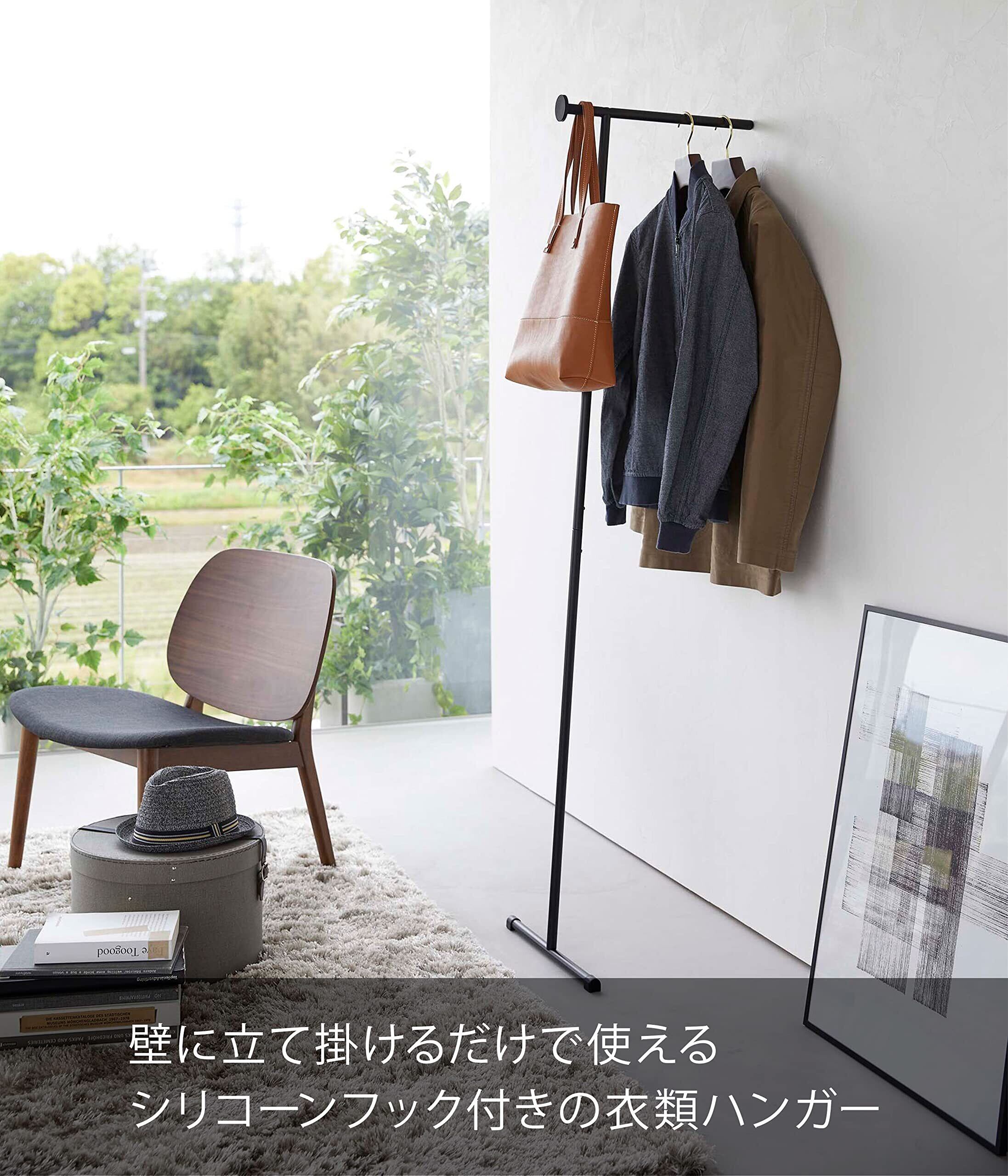 山崎実業(Yamazaki) スリムコートハンガー フレーム ブラック 約W38.5×D47×H162cm フレーム frame 立て掛けるだけ 衣類スチーマー掛けにも便利 6146