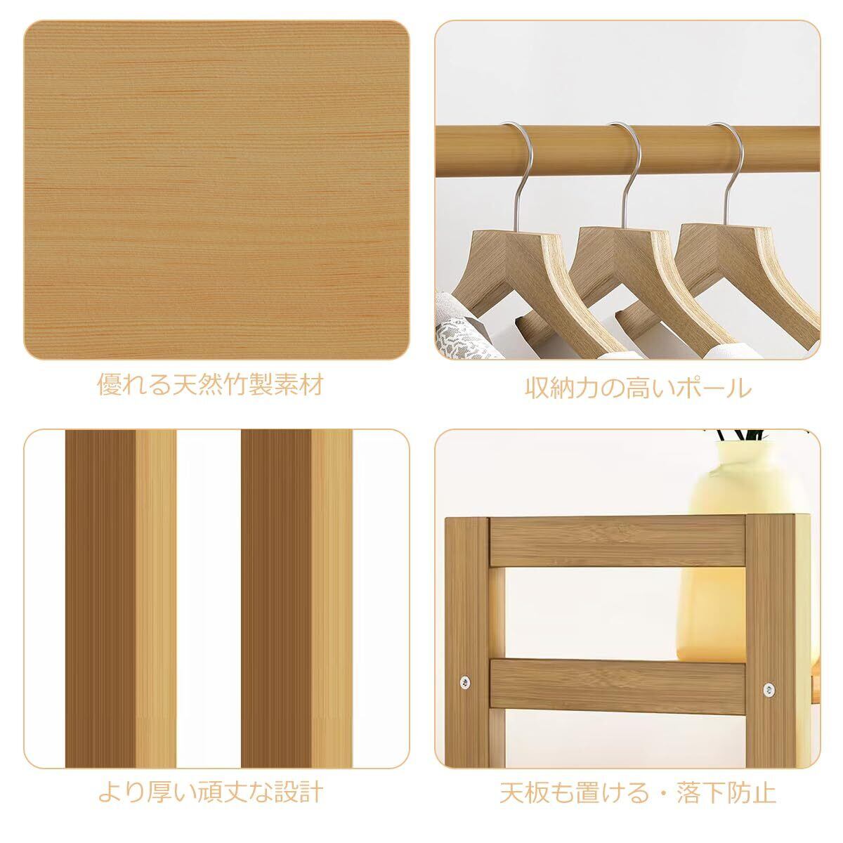 PASRLD ハンガーラック 天然竹製 ワードローブ クローゼット コートハンガー オープンラック 棚付き 衣類収納棚 洋服ラック 洋服掛け 収納ラック 大容量 頑丈 (A/170*30*150cm)