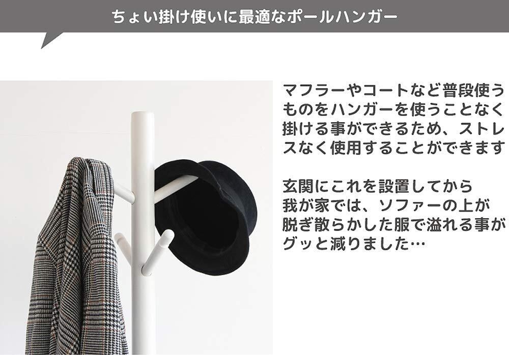 省スペースのポールハンガーです。フック形状のバーで帽子をかけるのにも便利。