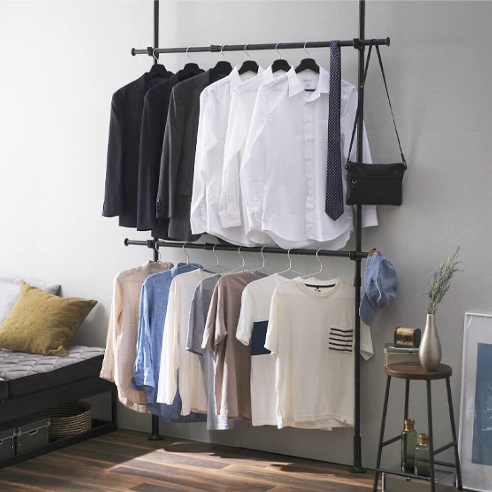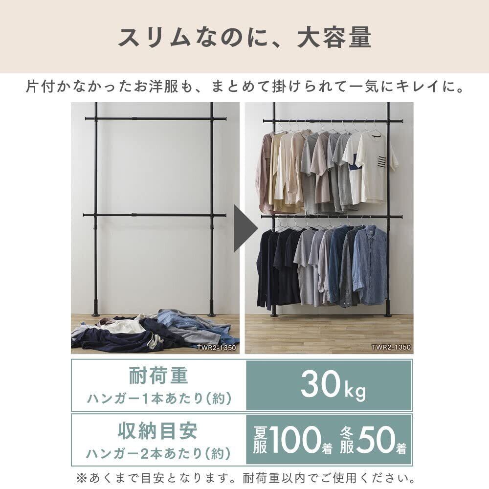 耐荷重:ハンガーパイプ(1本あたり)約30kg、全体約60kg(※耐荷重は測定値であり、保証値ではありません。)