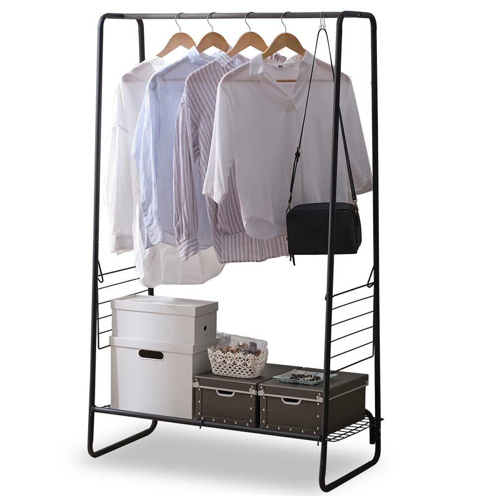 ◆物干しとしても、ハンガーラックとしても 洗濯物を「干して」、乾いたら畳まず「そのまま着る」という、 単身世帯の生活スタイルに基づき開発した、 片付けなくても恥ずかしくないインテリアにも馴染む新しい室内物干しです。 ◆小物・タオルも もちろん干せる 好きな位置に取り付け可能なピンチハンガーバーが付いています。 タオルハンガーは、お部屋のレイアウトに合わせて内側と外側に取り付け方を変更可能。 カバンや靴などが置けるメッシュ棚付きです。 ※この商品はお客様組立品です