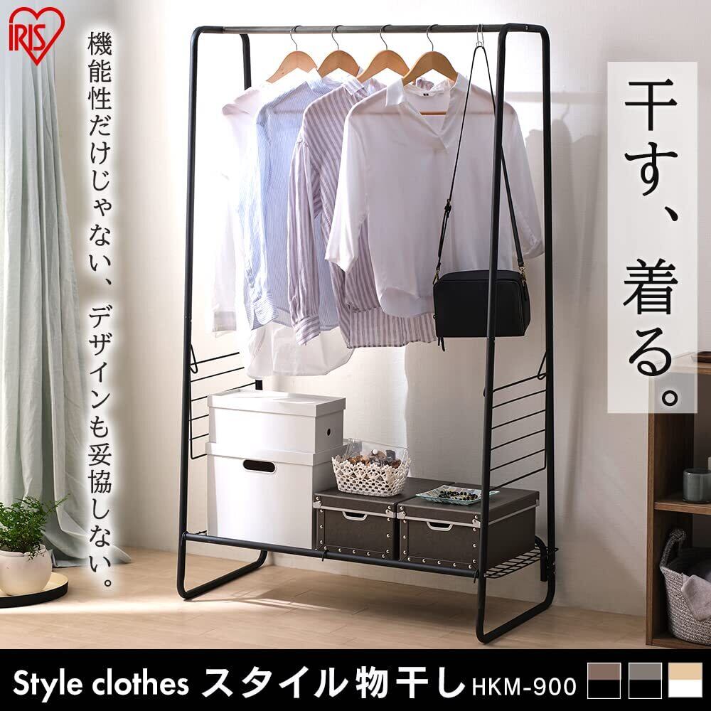 アイリスオーヤマ 洗濯物干しとして使わない時はハンガーラックとしても使用可能なおしゃれスタイル物干し 約2人用 HKM-900 アイアンウッド ブラック/アッシュグレー
