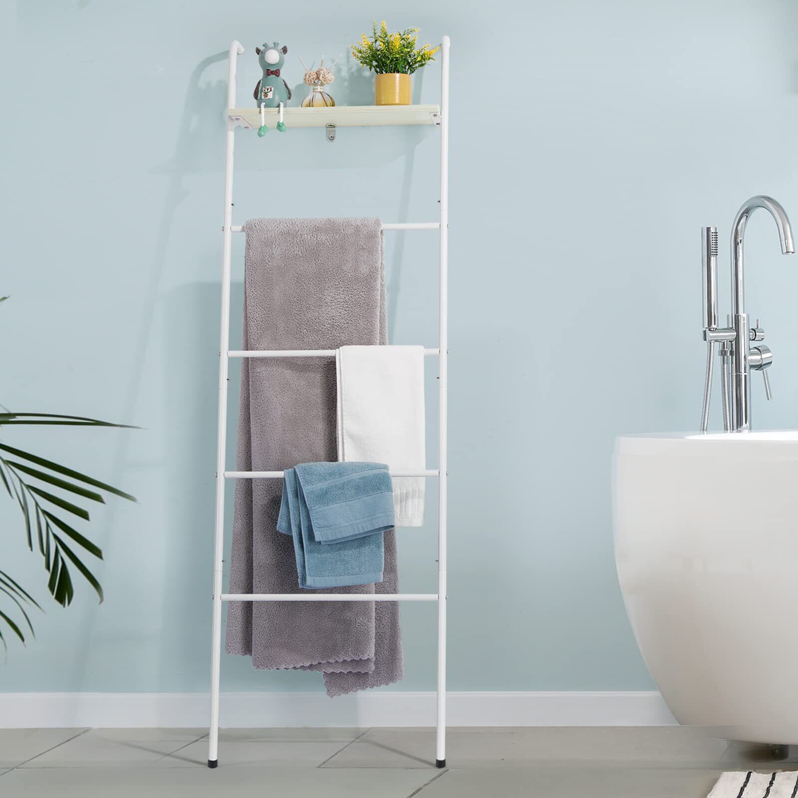 立て掛けタオルラック ラダーラック スリム ハンガーラック 5段式 ホワイトコート掛け ラダーシェルフはしご型浴室リビングルームリ壁面収納北欧風タオル収納45×20×146.5cm