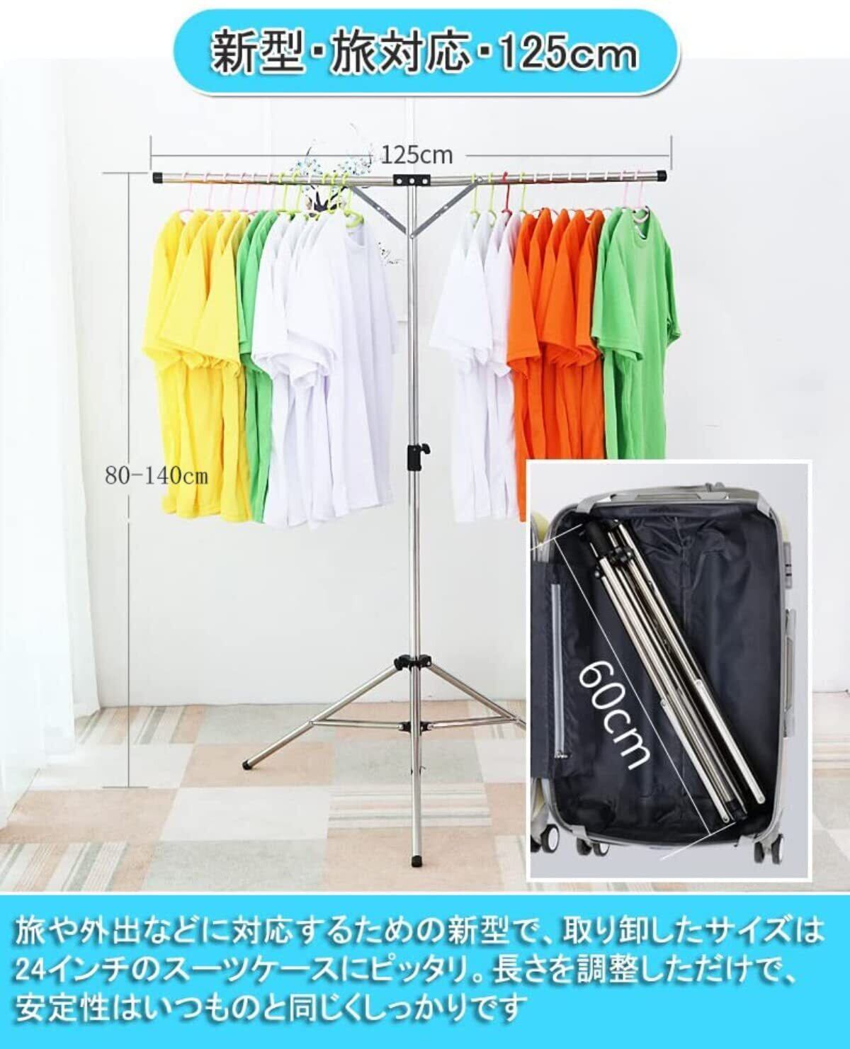 物干しラック 布団ハンガー DEWEL 洗濯ハンガー タオルハンガー ふとん干し 洗濯物干し 折り畳み 伸縮式 省スペース(125(旅行用))