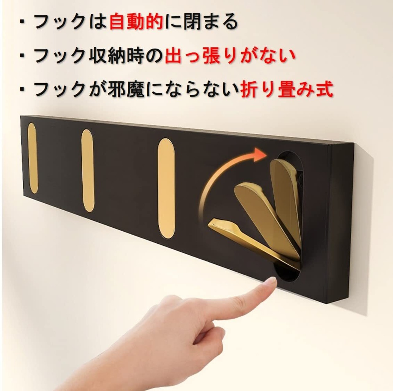 掛けてあるものを外すと、フックは自動的に閉まり本体へ収納されます。