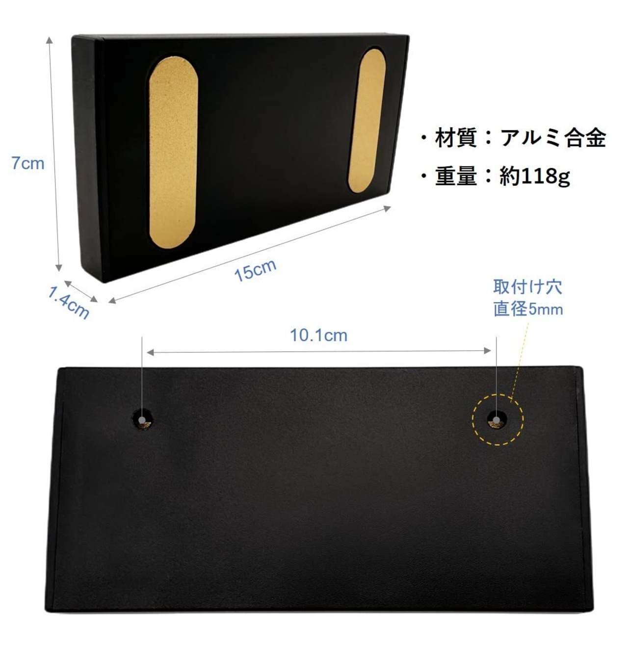 2連フック。材質:アルミ合金。重量:約118g。サイズ:約W15×D1.4×H7㎝。