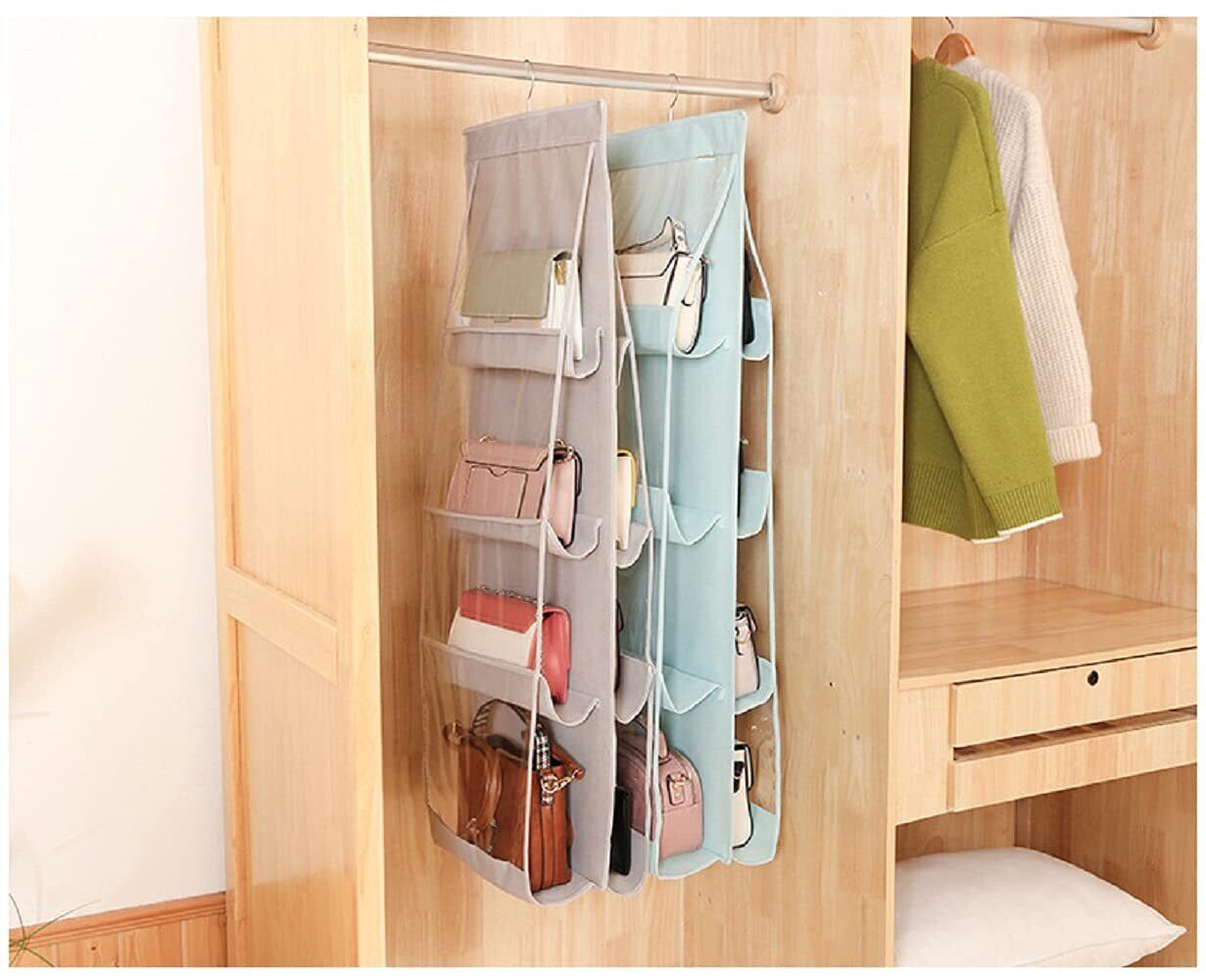 ドアまたは壁に取り付けられるポケット、8つ付き大容量のバック収納ハンガーです、ハンドバッグなど、散らかりやすいバッグをすっきり収納できる便利な収納ホルダーです!
