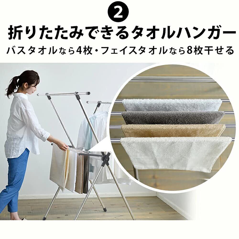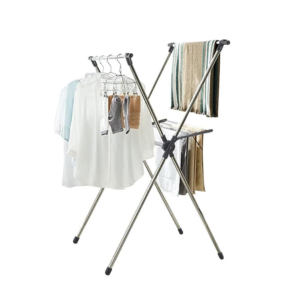 BAOYOUNI 室内物干し 洗濯物干しスタンド X型 タオルハンガー付き 室内 ベランダ 物干しラック - 耐荷重 ステンレス 防錆 コンパクト (幅88-155×奥行82×高さ128cm)