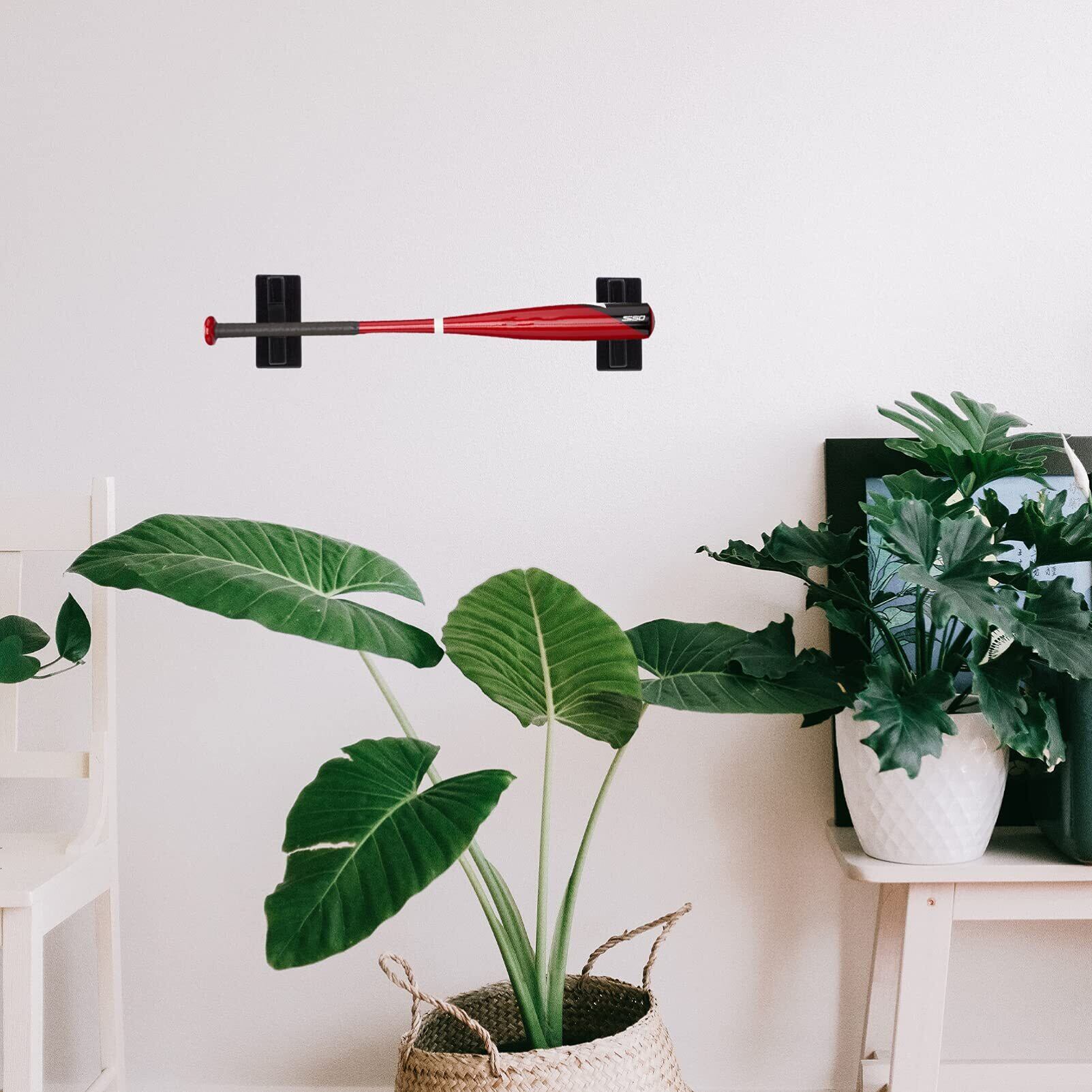 LIOOBO 2個野球バットマウント木製野球バットディスプレイホルダーソフトボールバットハンガー野球バットスタンド水平オーガナイザー壁ラック黒