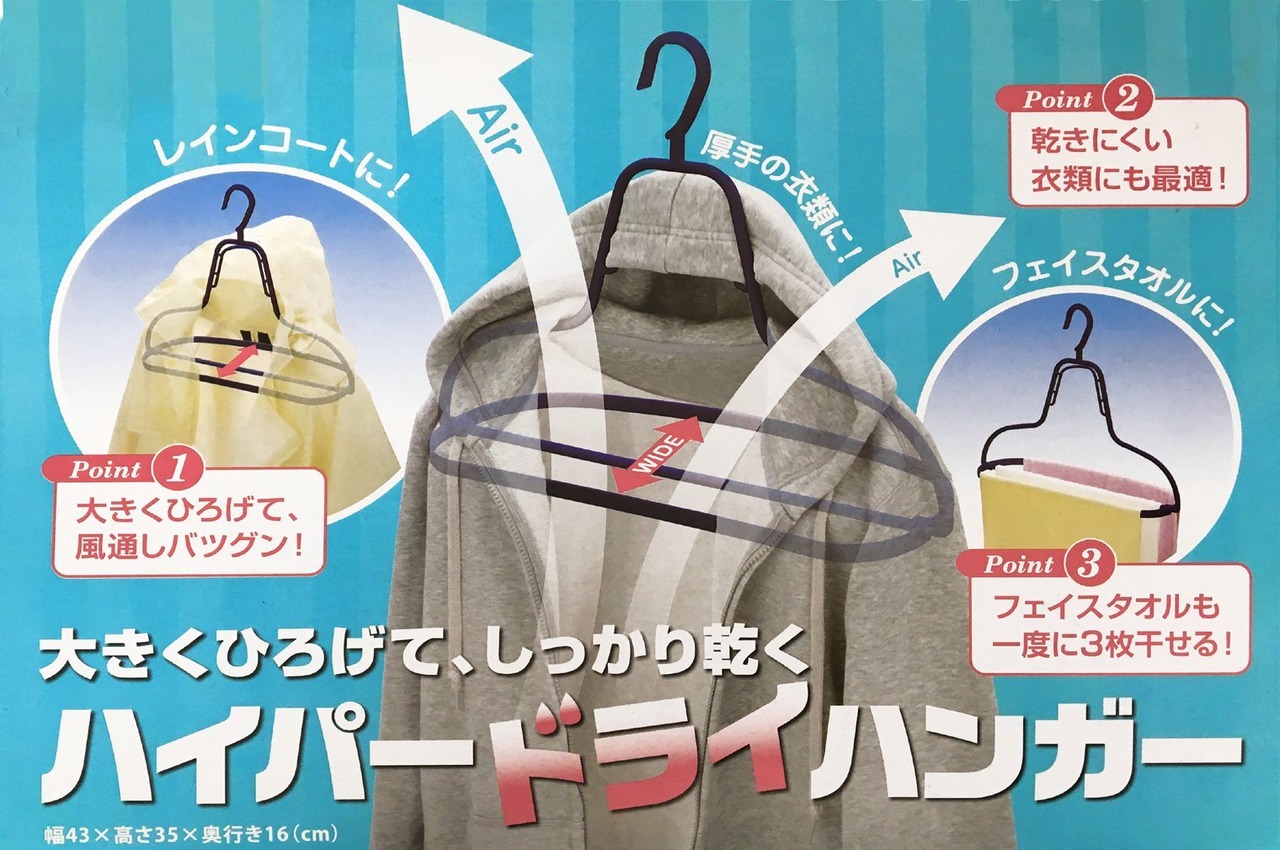 前を大きく広げて干せば風通しが抜群。気温が低い季節や天気がすぐれない時にもしっかり乾く。