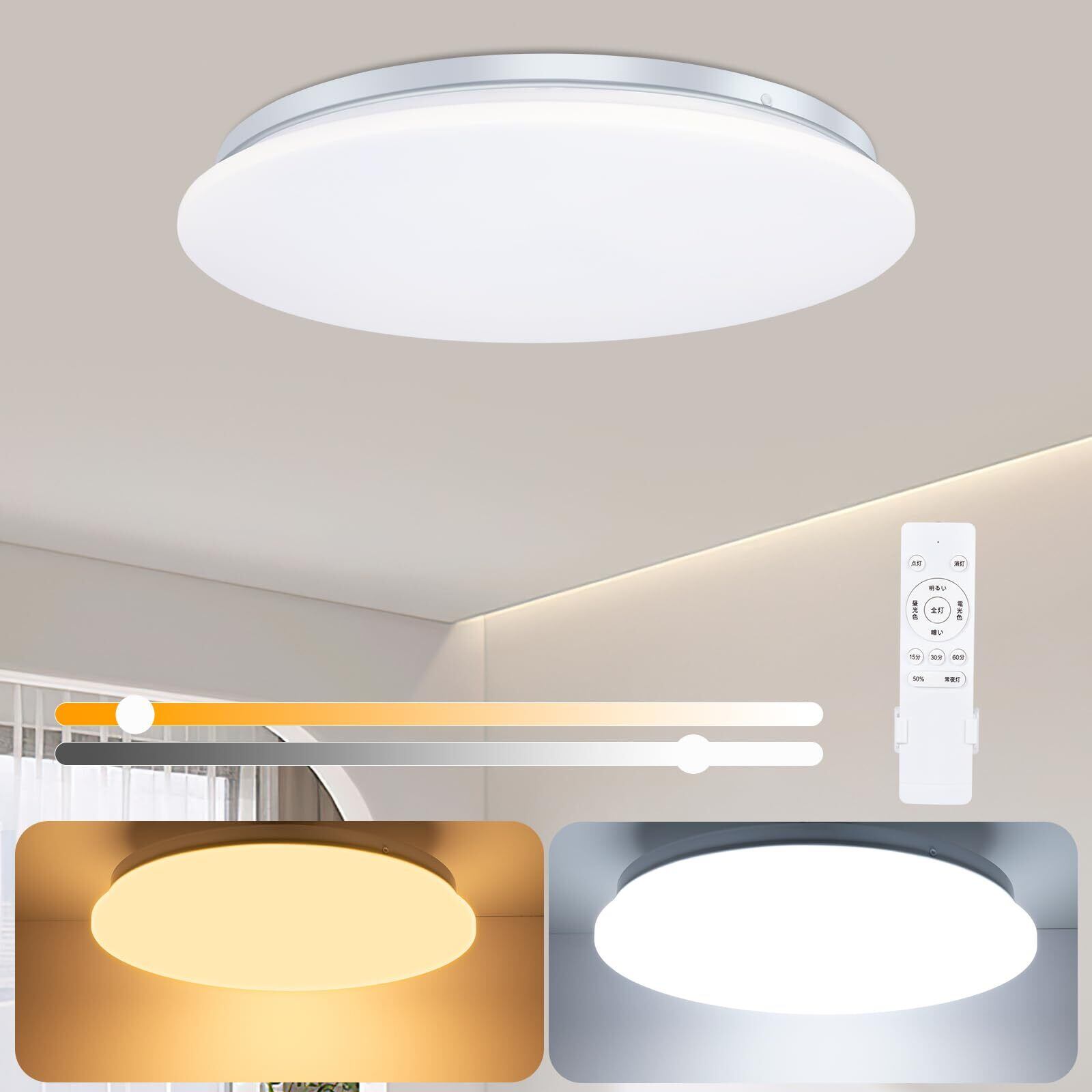 LEDシーリングライト 8畳 33W 器具光束:3900lm シーリング+ライト調色/調光タイプ 昼光色 電球色 リモコン付き 調光タイプ LEDライト 常夜灯モード メモリ機能 15分/30分/60分スリープタイマー 玄関 寝室 和室 台所 洗面所 天井照明 PSE認証獲得 日本語説明書付