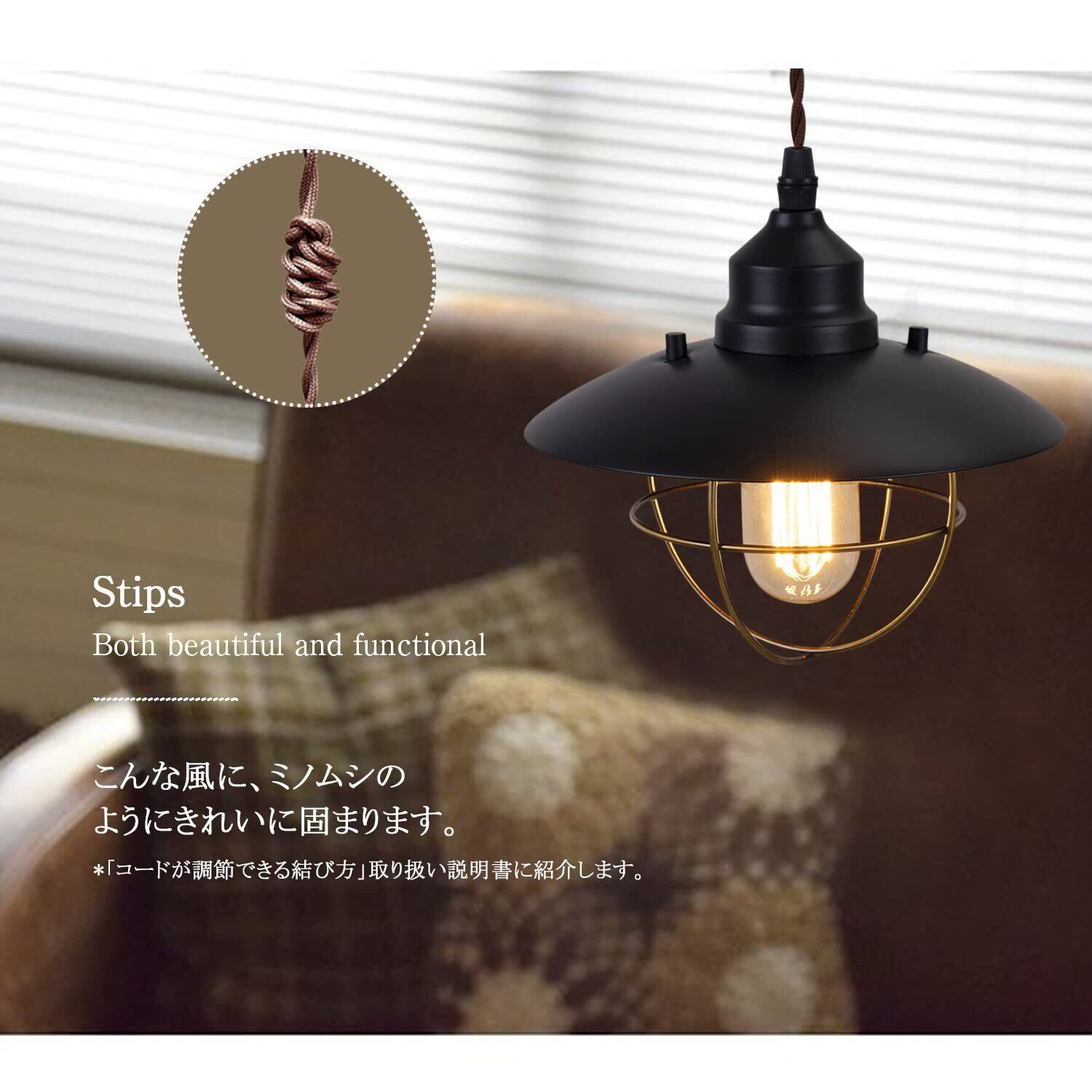照明の照らすという役割だけに留まらず、1つのインテリアとしても映える、渋いデザイン性が魅力のアイテムとなっております。灯だけ吊るしても雰囲気がありますが、何灯か並べても、複数灯を束ねてシャンデリア風にしても◎。