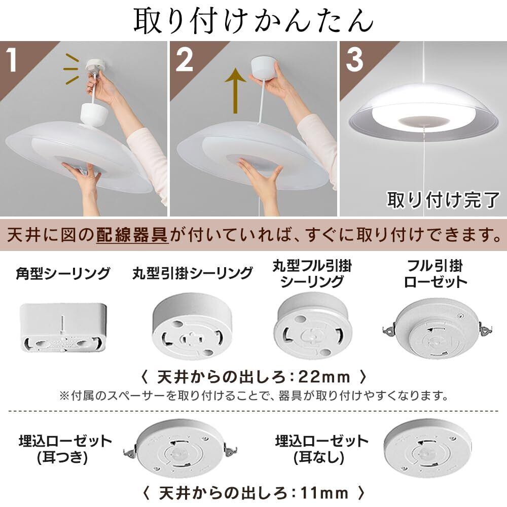 【2STEPの簡単取り付け】天井の配線器具に取り付け、シーリングカバーを引き上げるだけの簡単取り付け。