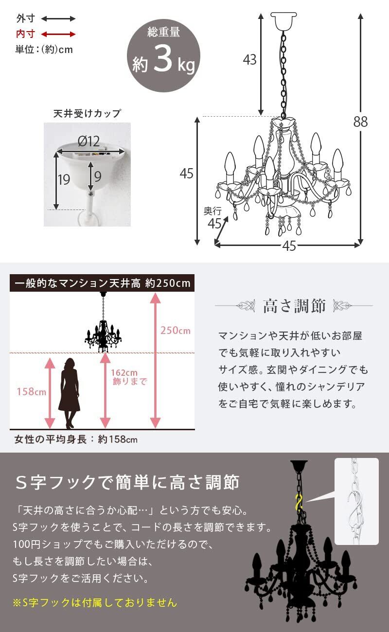 【本体サイズ】:(約)幅45×奥行45×高さ45㎝/ソケット部+チェーンの長さ(約)43㎝
