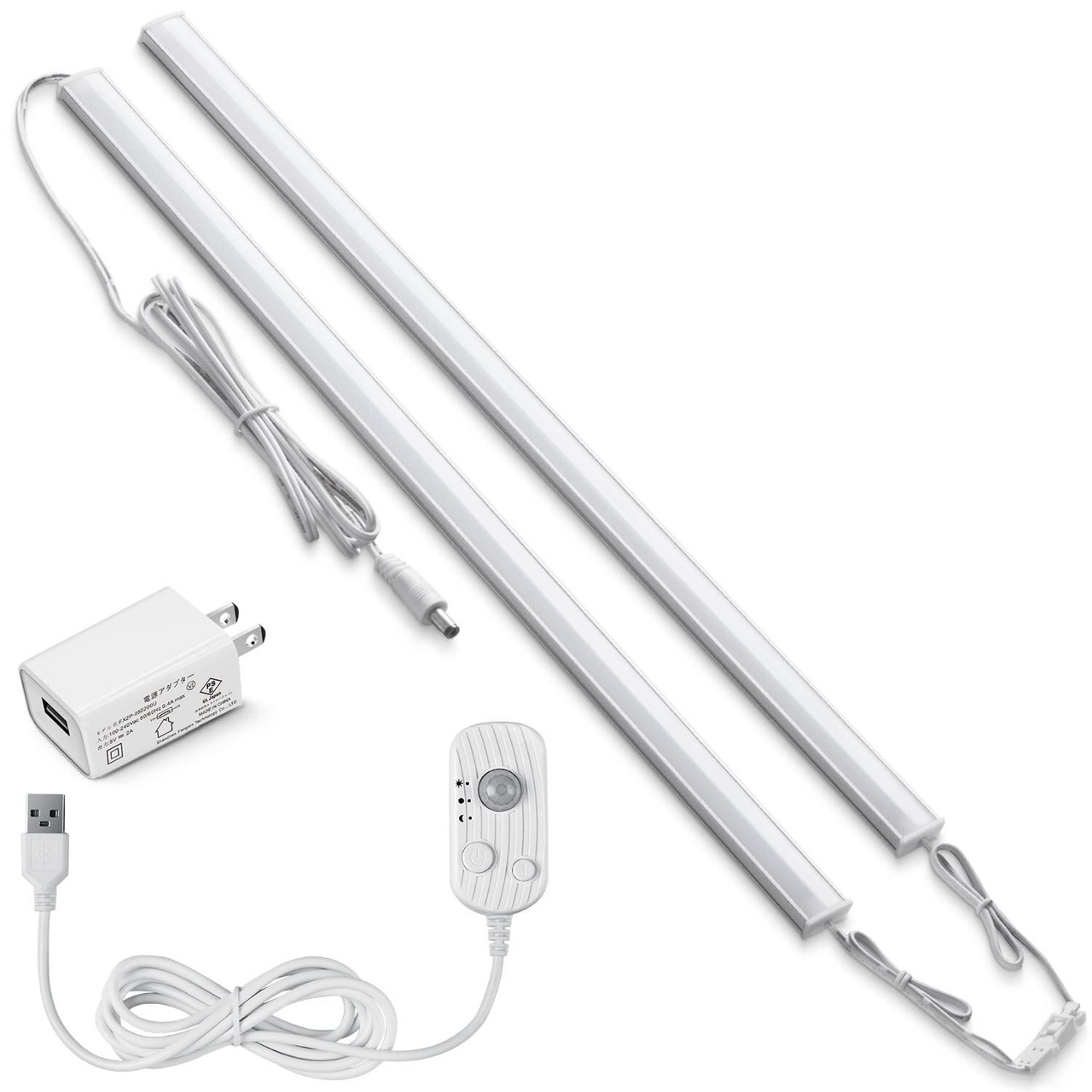 人感センサーライト 室内 コンセント【分離型 消灯時間設定】LED バーライト キッチンライト USB給電 無段階調光 連結可能 薄型 35cm マグネット 工事不要 玄関/クローゼット/トイレ/階段(昼光色/6000K)