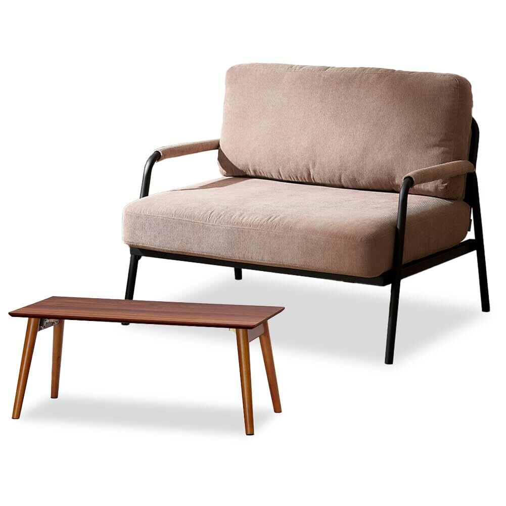 アイリスオーヤマ 【新生活2点セット】 1人用 ソファー グレージュ+ 折りたたみテーブル ウォールナット