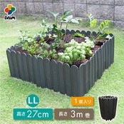 【本体サイズ】(約) 高さ27cm×長さ3m 【用途】芝の根止め、花壇作りに。お隣りへの土の流出を気にせず簡単にガーデニングが楽しめる。ぐるっと囲うだけで野菜畑も簡単に作れます。