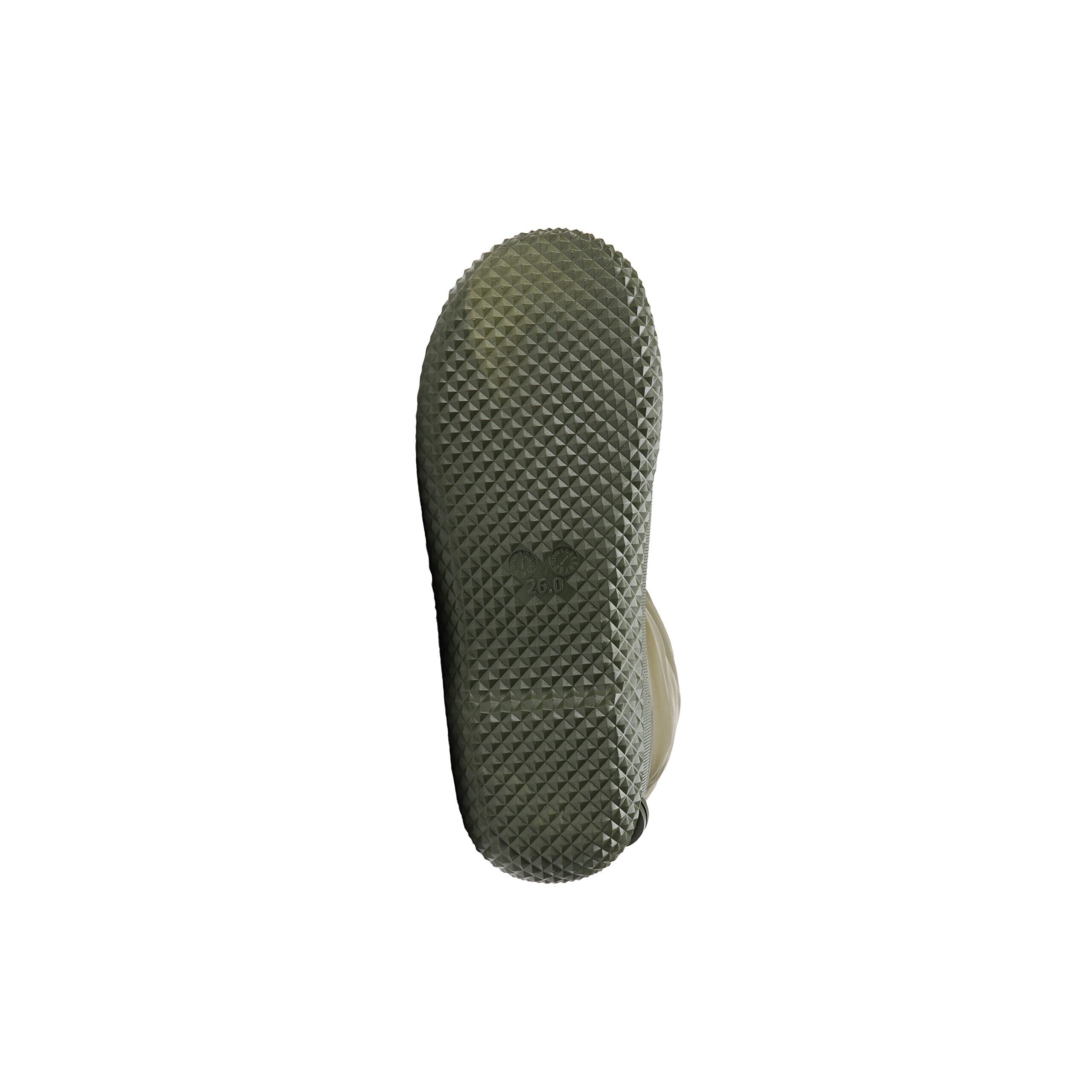 撥水加工されたフードの上部には、履き口が絞れるストラップを採用。足とブーツの間の隙間をなくすことで、履き口からの異物侵入を防ぎます。 また、フード部分は折りたたみが可能。長靴のようにかさばらないので、コンパクトなシューズボックスにも収納できます。