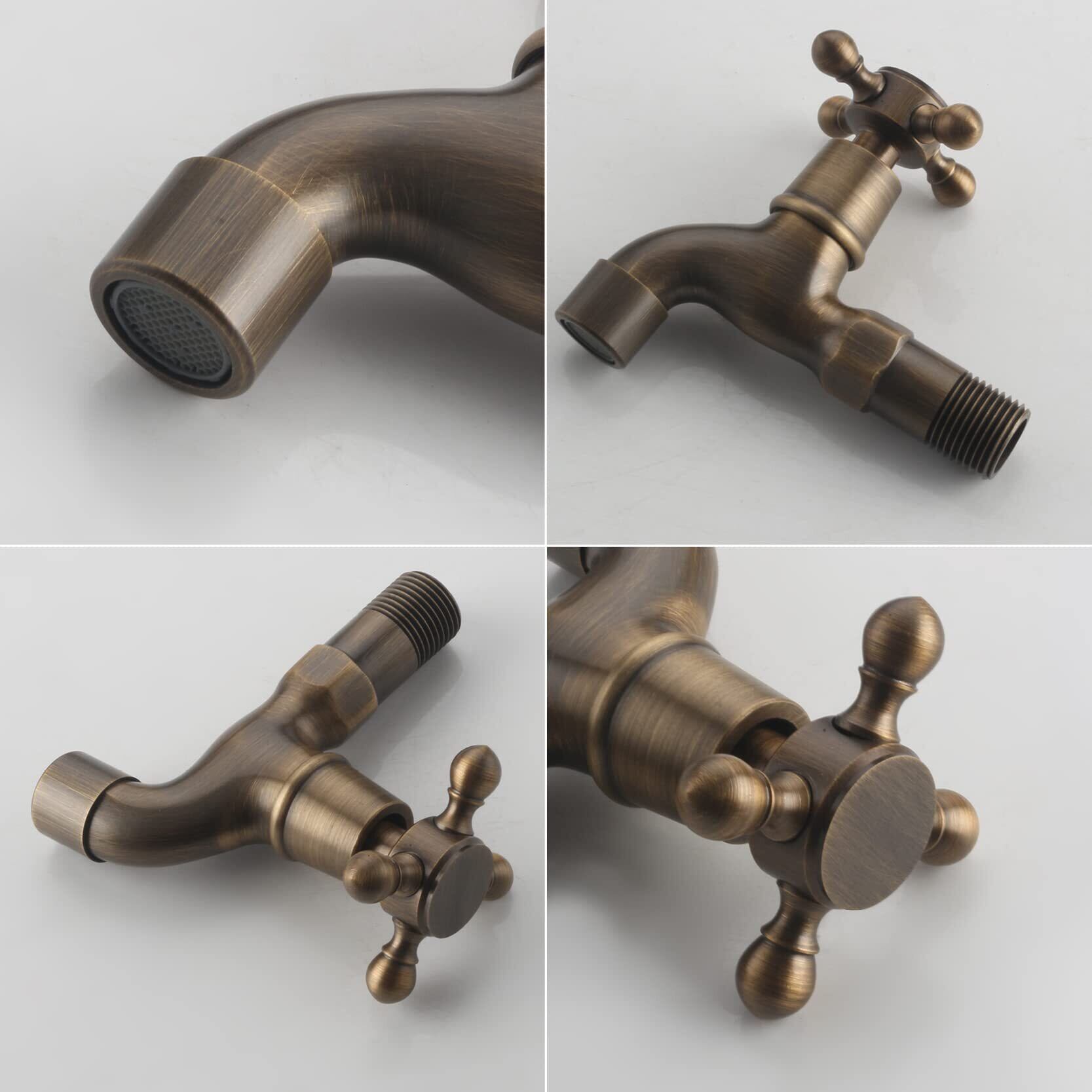 MEOMER 洗濯機の水栓 アンティーク蛇口 クロスハンドルレトロな銅の蛇口 真鍮洗面器の蛇口 屋外ガーデンシングルコールド蛇口 洗面設備 ガーデニング