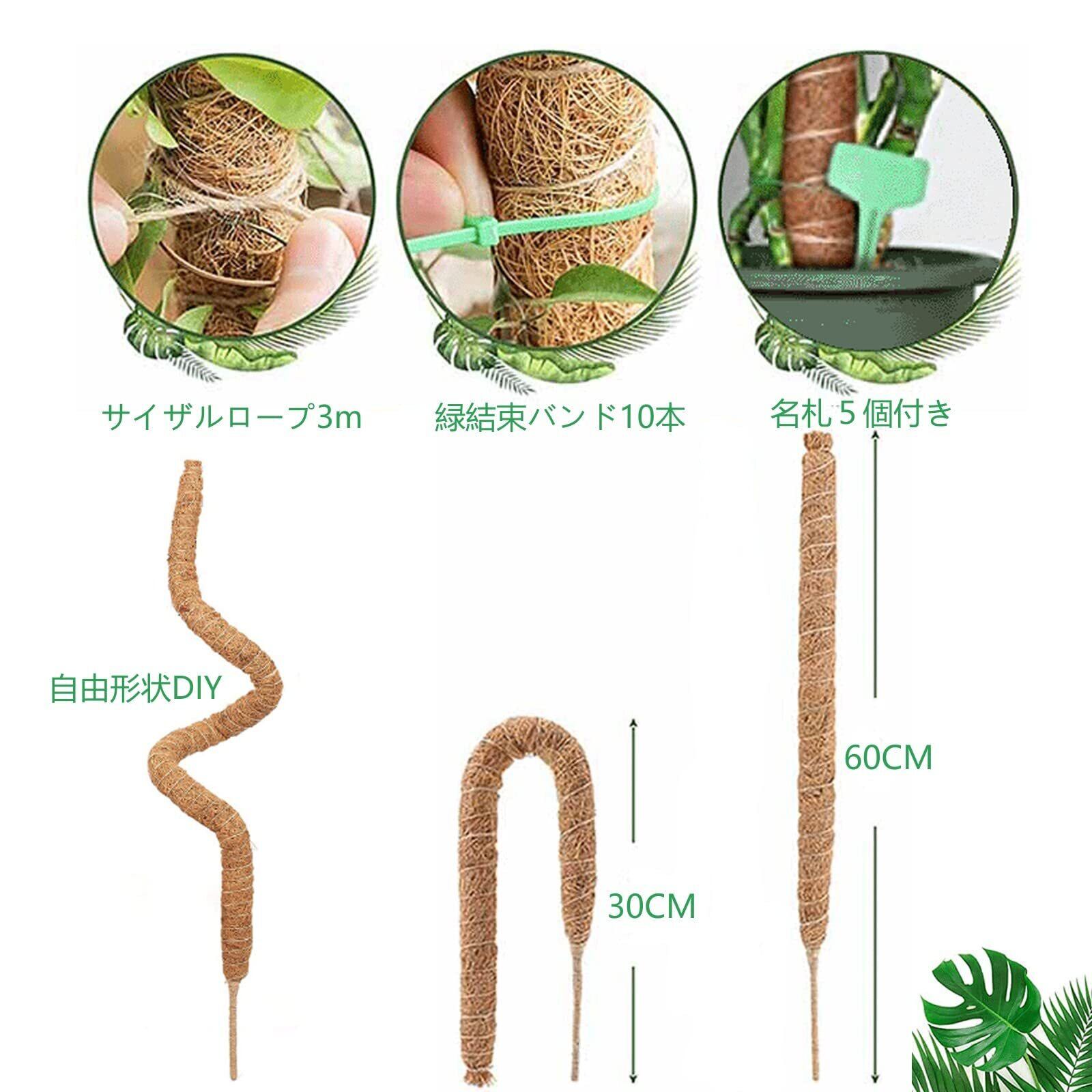 ★60CM×ココナッツ支柱2本、2M麻ロープX1本、緑結束バンド×10本、表示ラベル×5個