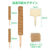 【6本セット】 園芸支柱 モンステラ 支柱 ヘゴ支柱つる性植物 植物支柱 40cm 誘引 支柱 フラワースタンド 花支え ココナッツ支柱 植物ネクタイ 植物サポート 延長可能 植物成長 園芸用 農業用 支柱棚 6本40cm園芸支柱+2m麻縄+6個T型植物ラベル