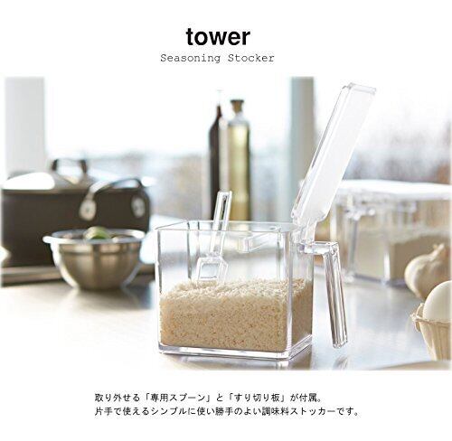 山崎実業(Yamazaki) 調味料入れ Sサイズ 3個 Lサイズ 2個 & ラック 6点セット ストッカー 容器 ケース 収納 スプーン キッチン タワー ホワイト 3341 2867×3