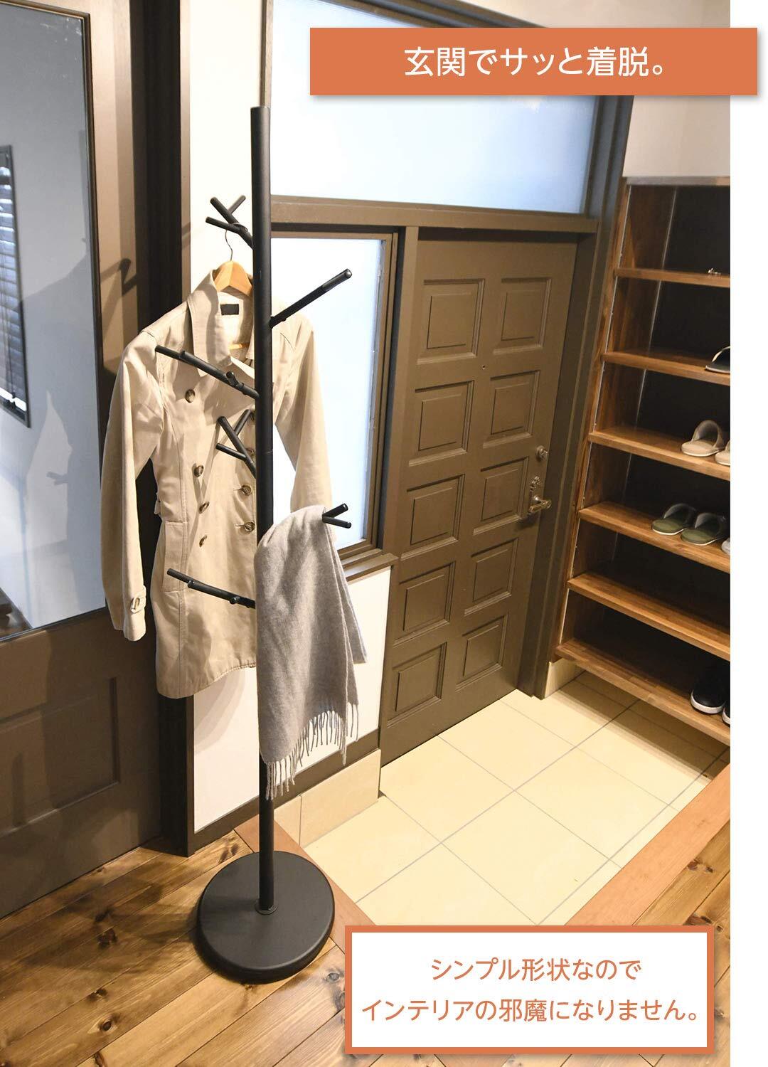 [山善] ポールハンガー スリム 直径30×高さ176cm 玄関 コートハンガー ハンガーラック 組立かんたん 枝葉モチーフ ブラック RTP-176(SBK)