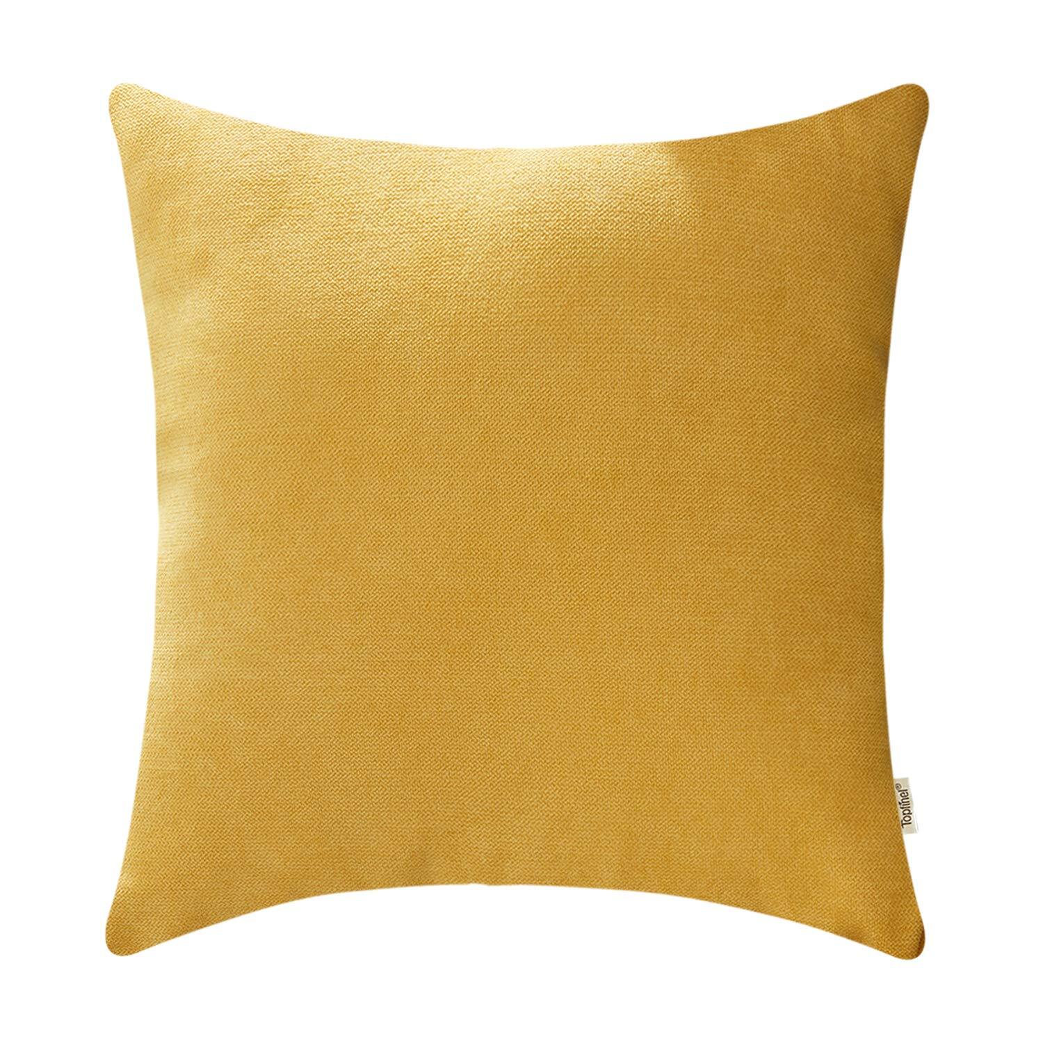 Topfinel クッションカバー リネンっぽい 55×59cm 北欧 おしゃれ 綿麻 無地 ソファ背当て 装飾枕カバー 座布団カバー イエロー 1枚(全10色)