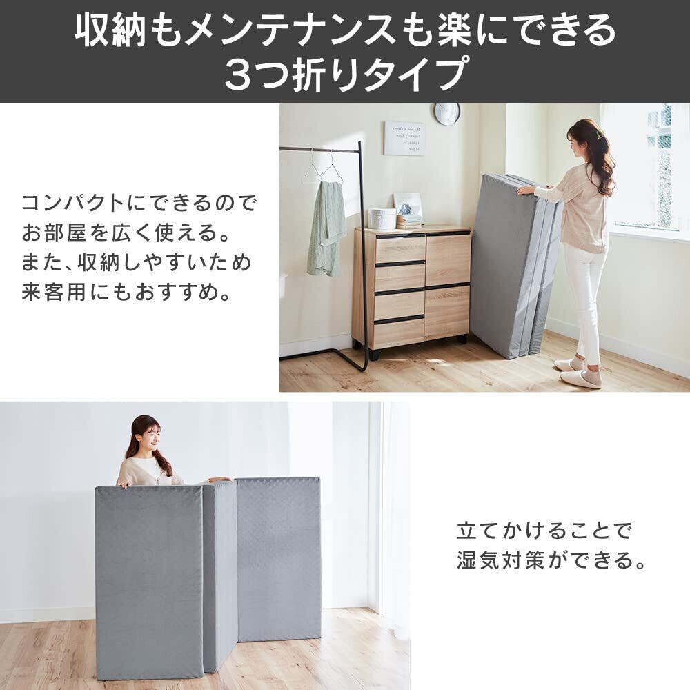 床付きを感じさせない、たっぷり約10cmの厚さなのでフローリングやベッドに直接敷いてお使いいただけます。