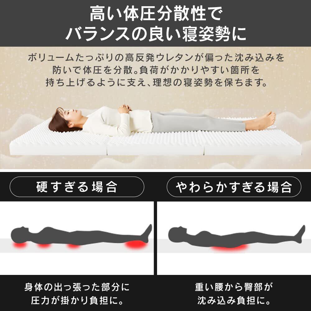 高反発プロファイルマットレスは反発力が高く、加重されても直ぐに押し返すので、身体が沈み込みすぎず、寝返りをサポートします。