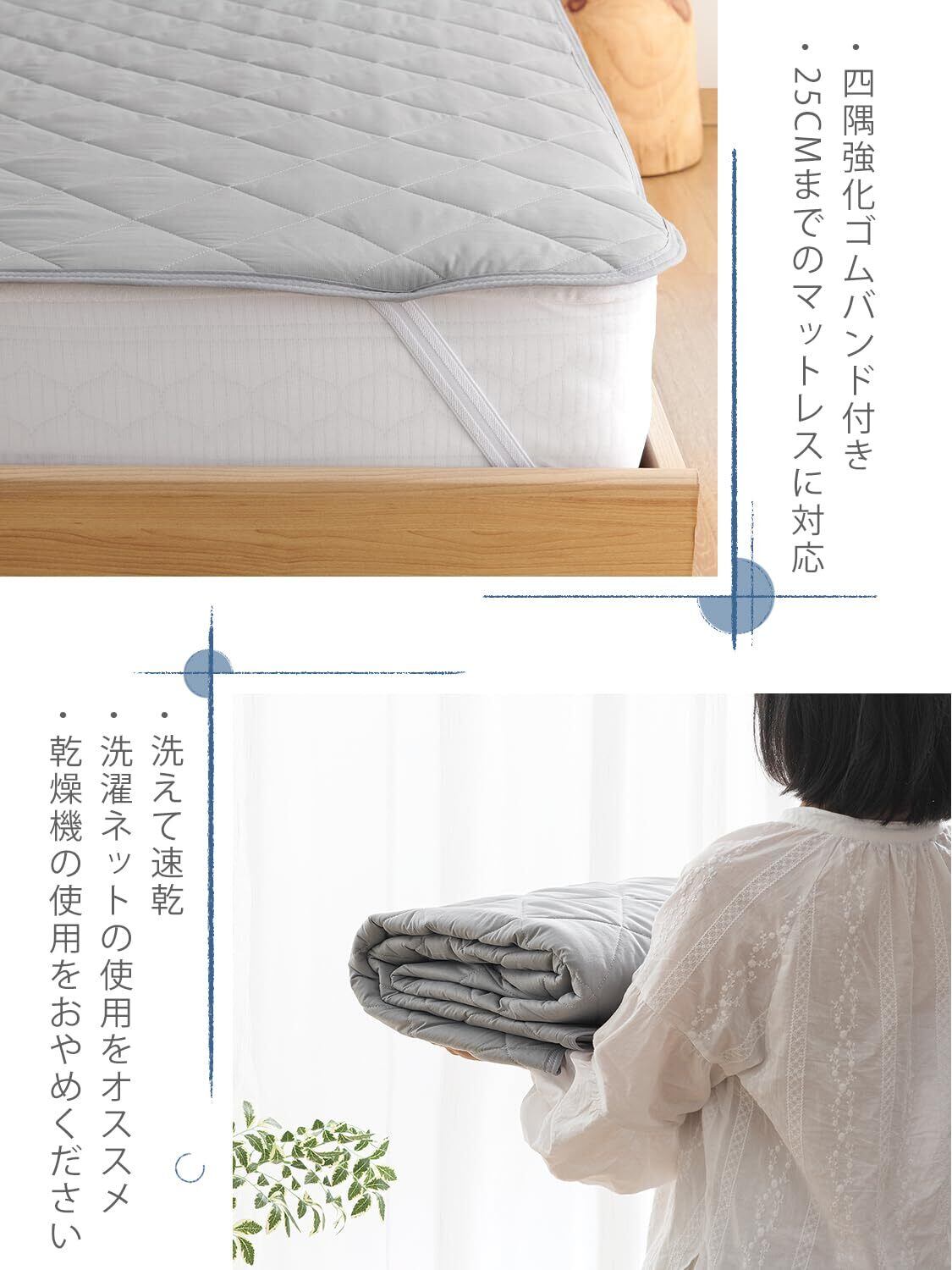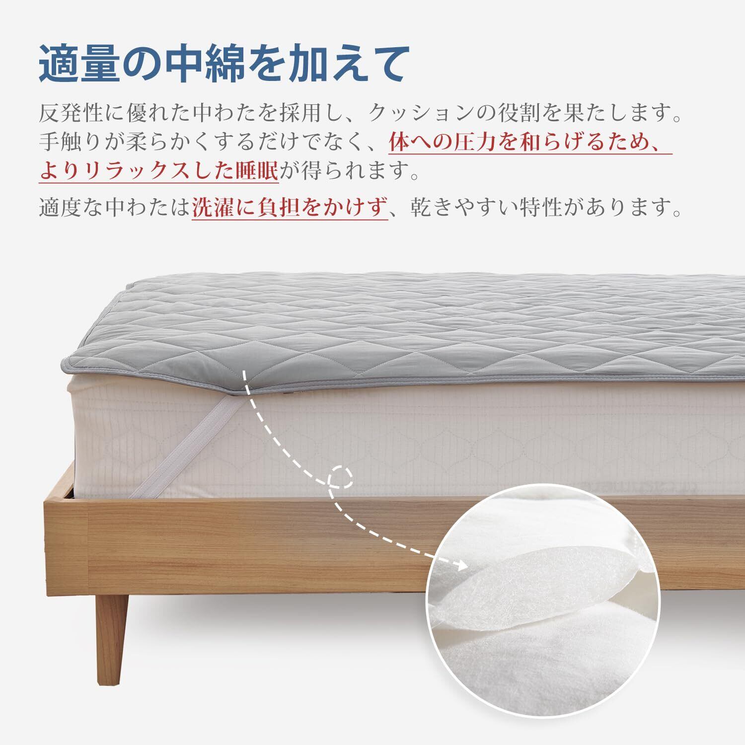 <ゴムバンド付き>:四隅には強化ゴムバンド付き、厚さ25cmまでのベッド/マットレス/敷き布団にぴったりフィットします! しっかり固定して、着脱も簡単、寝返りしても大丈夫です。