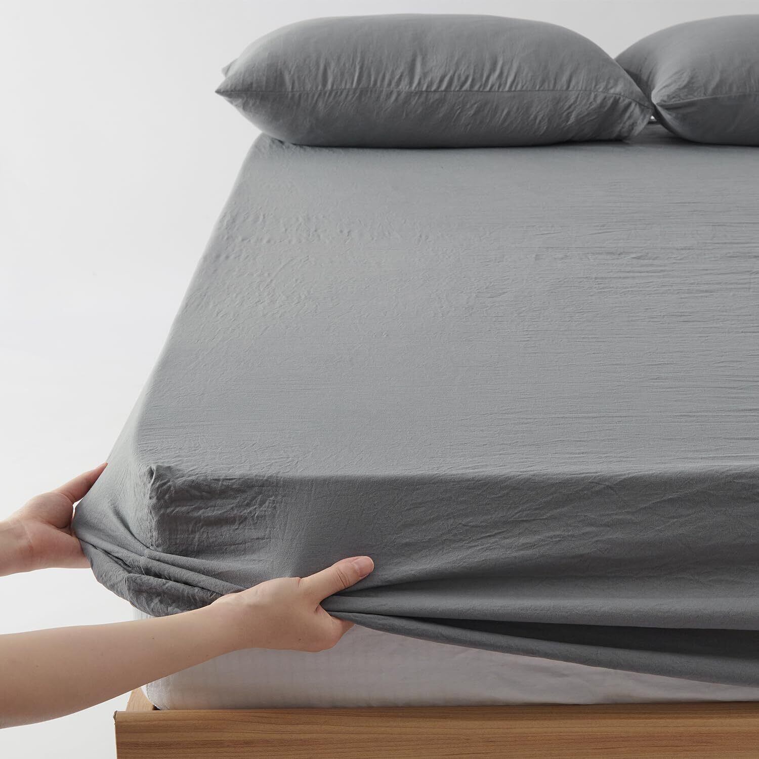 クモリ(Kumori) ボックスシーツ シングル 100X200cm 洗いざらし 柔らかい 肌触り 無地 耐久シワ加工 洗える 吸湿速乾 着脱簡単 オールシーズン ベッド/マットレス/敷き布団対応 ベッドシーツ シーツ マットレスカバー ベッドカバー (100X200cm, ダークグレー)